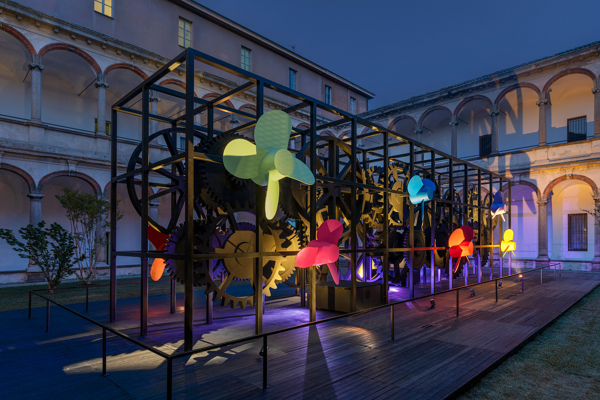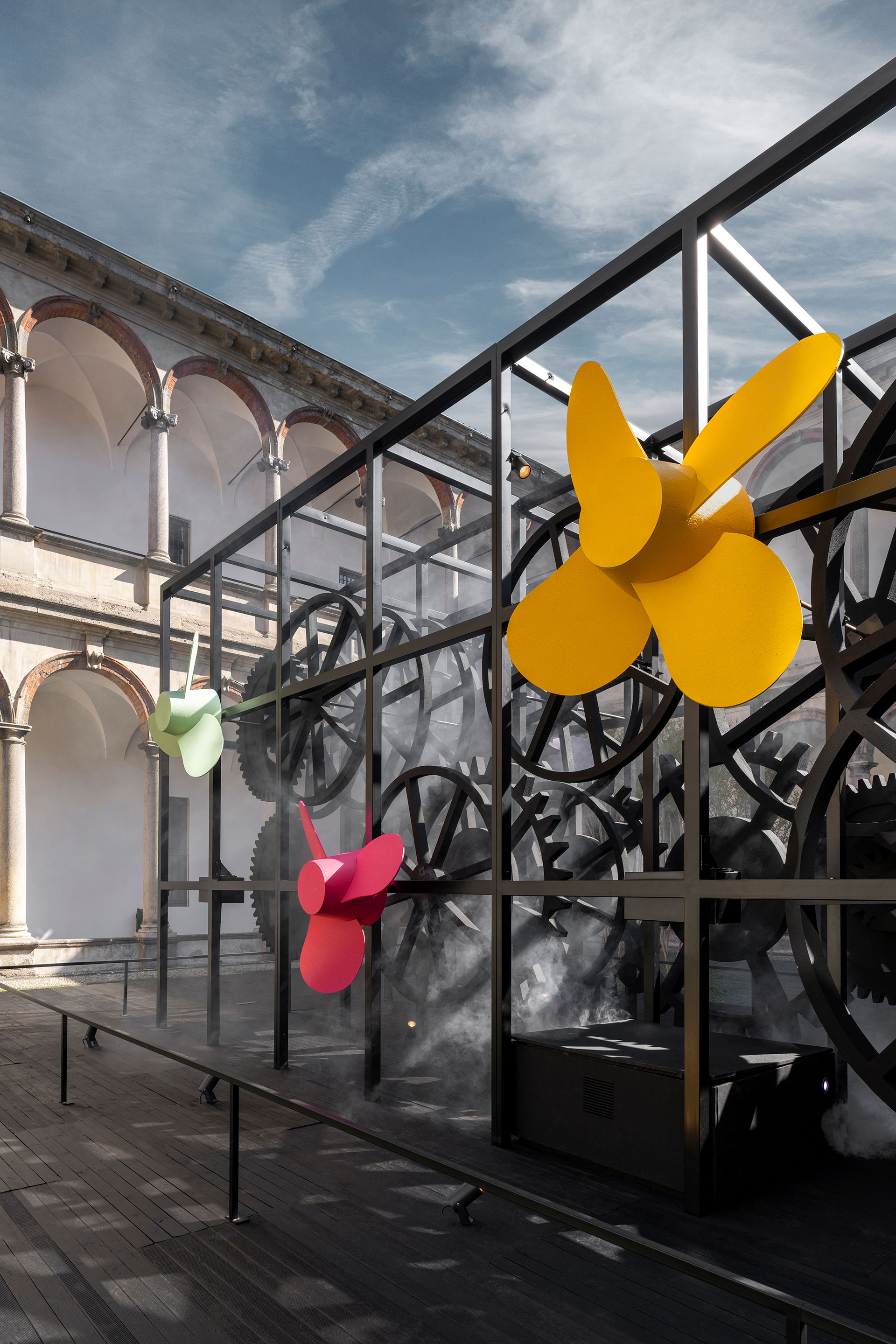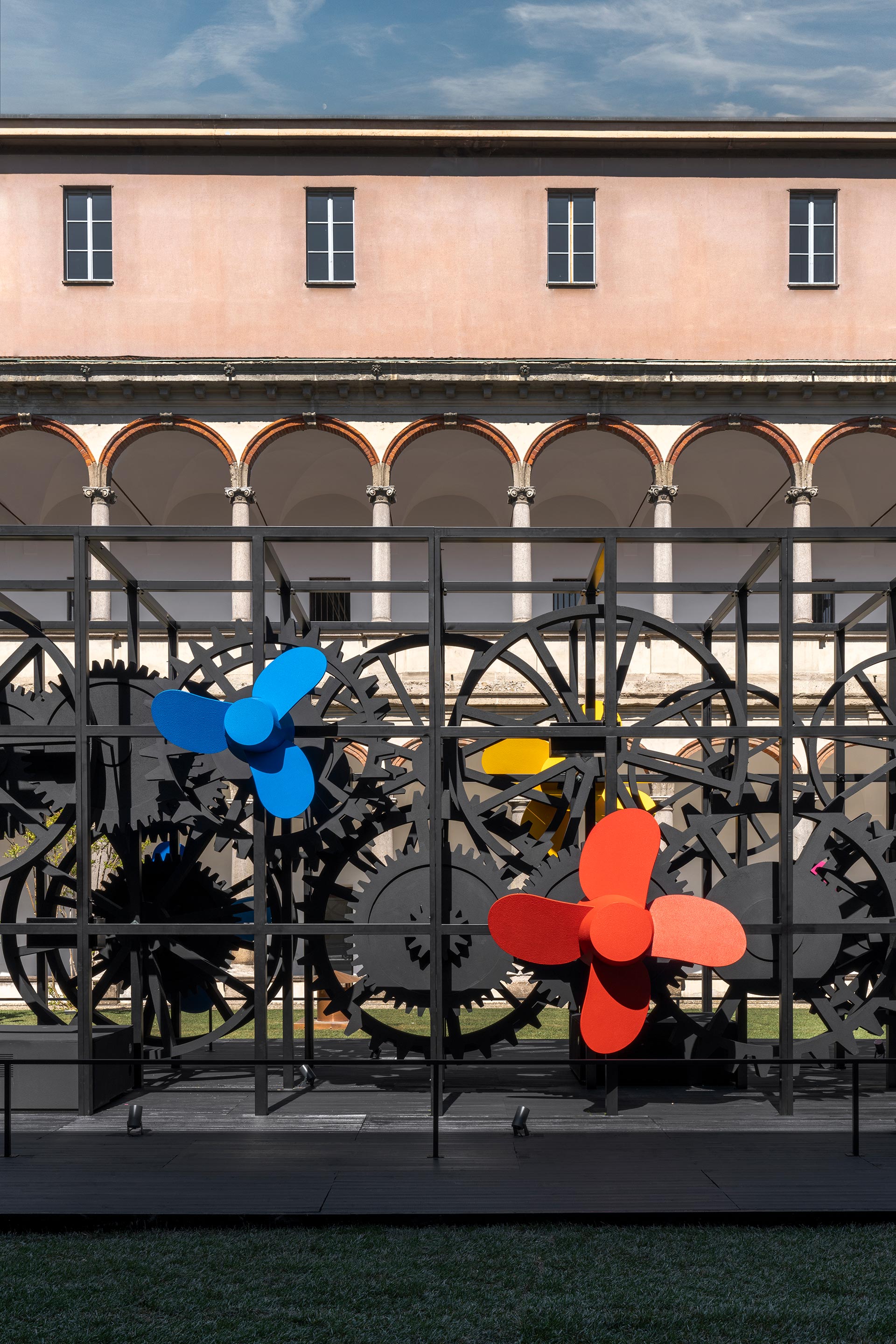 Sanlorenzo returns to FuoriSalone during Milano Design Week 2023 with La Macchina Impossibile, an installation showcased within the INTERNI Design Re-Evolution exhibition at the University of Milan. Designed by Piero Lissoni, the project offers a poetic yet rigorous interpretation of the shipyard’s commitment to developing advanced technological solutions aimed at reducing the environmental impact of yachting. Set at the centre of the 18th-century courtyard, the large metal sculpture evokes the precision and artisanal care of a yacht: a complex mechanism of propellers and serrated wheels rests on a backlit platform and was enveloped in a light vapour recalling the turbine effect of a Fuel Cell system. The installation showcases the hydrogen technology developed by Sanlorenzo in collaboration with Siemens Energy, based on Reformer Fuel Cell modules powered by green methanol, first introduced in 2024 on the 50Steel Almax. With La Macchina Impossibile, Sanlorenzo reaffirms its role as a pioneer in sustainable innovation, marking a decisive step towards carbon-neutral power generation for the future of yachting.