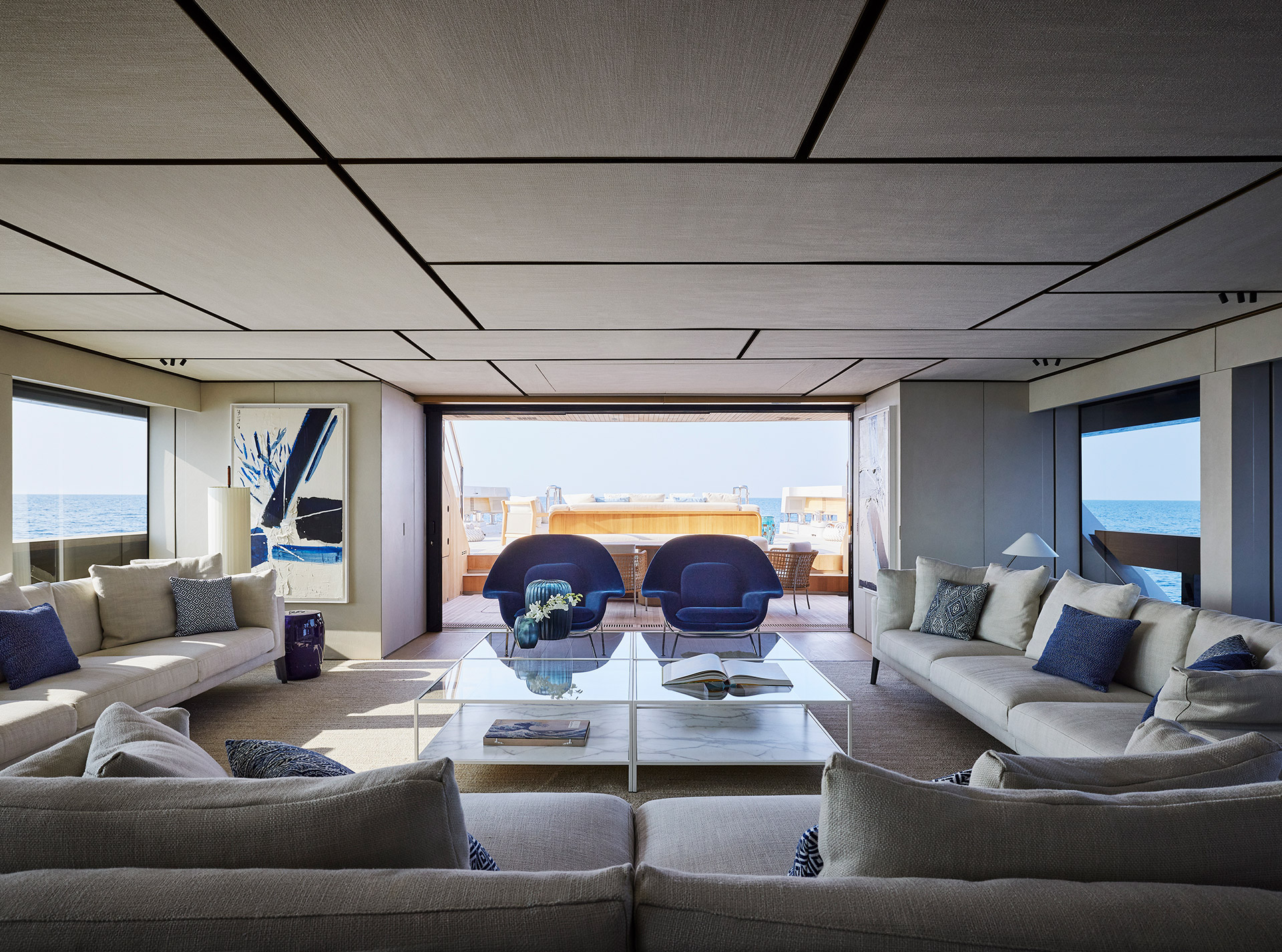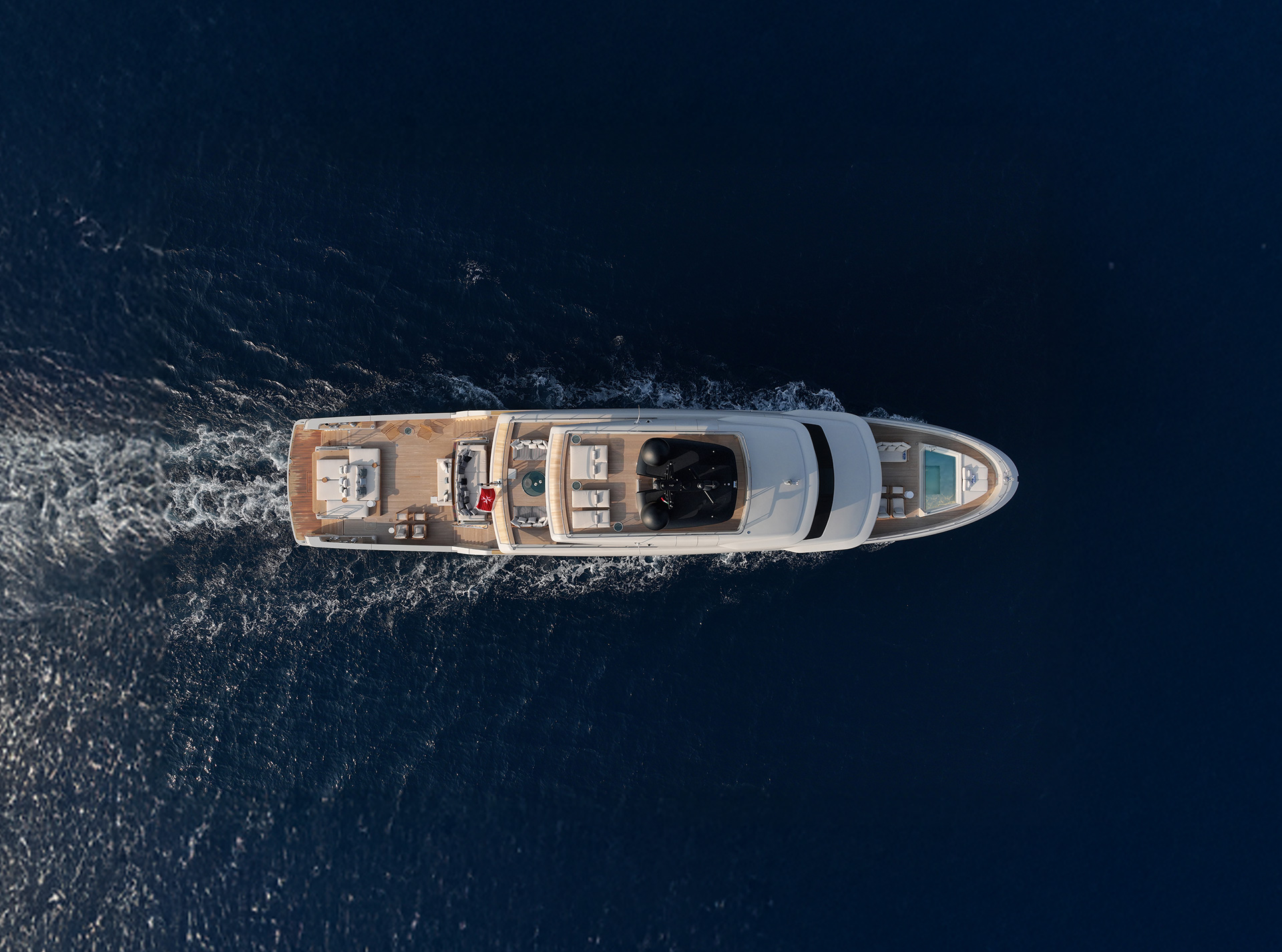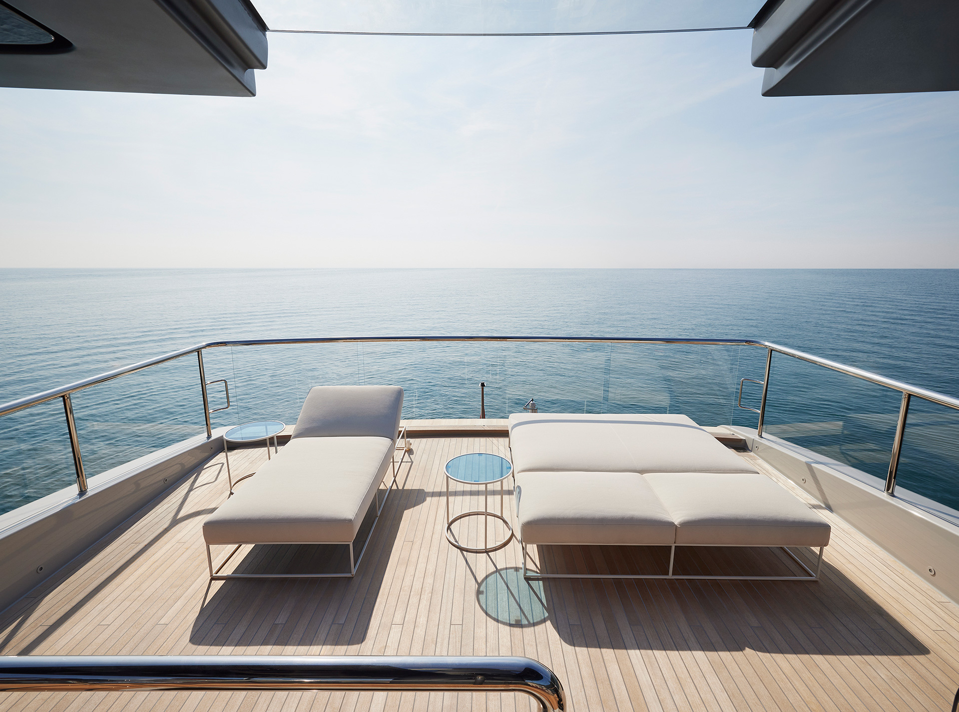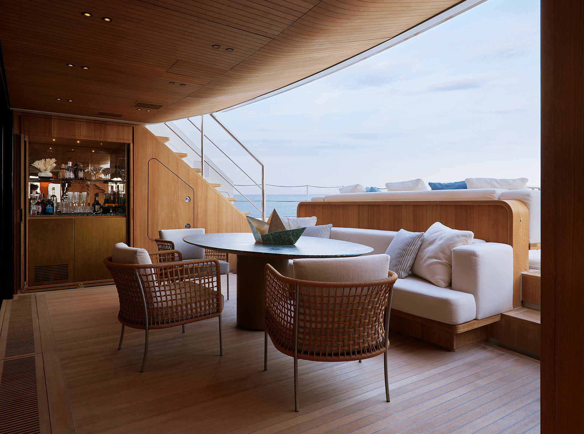 44X-Space offers extraordinary volume, headlined by its spacious aft area. This open-air living area can expand by an additional 18 square metres through folding balconies, creating a seamless connection with the adjacent interior spaces.