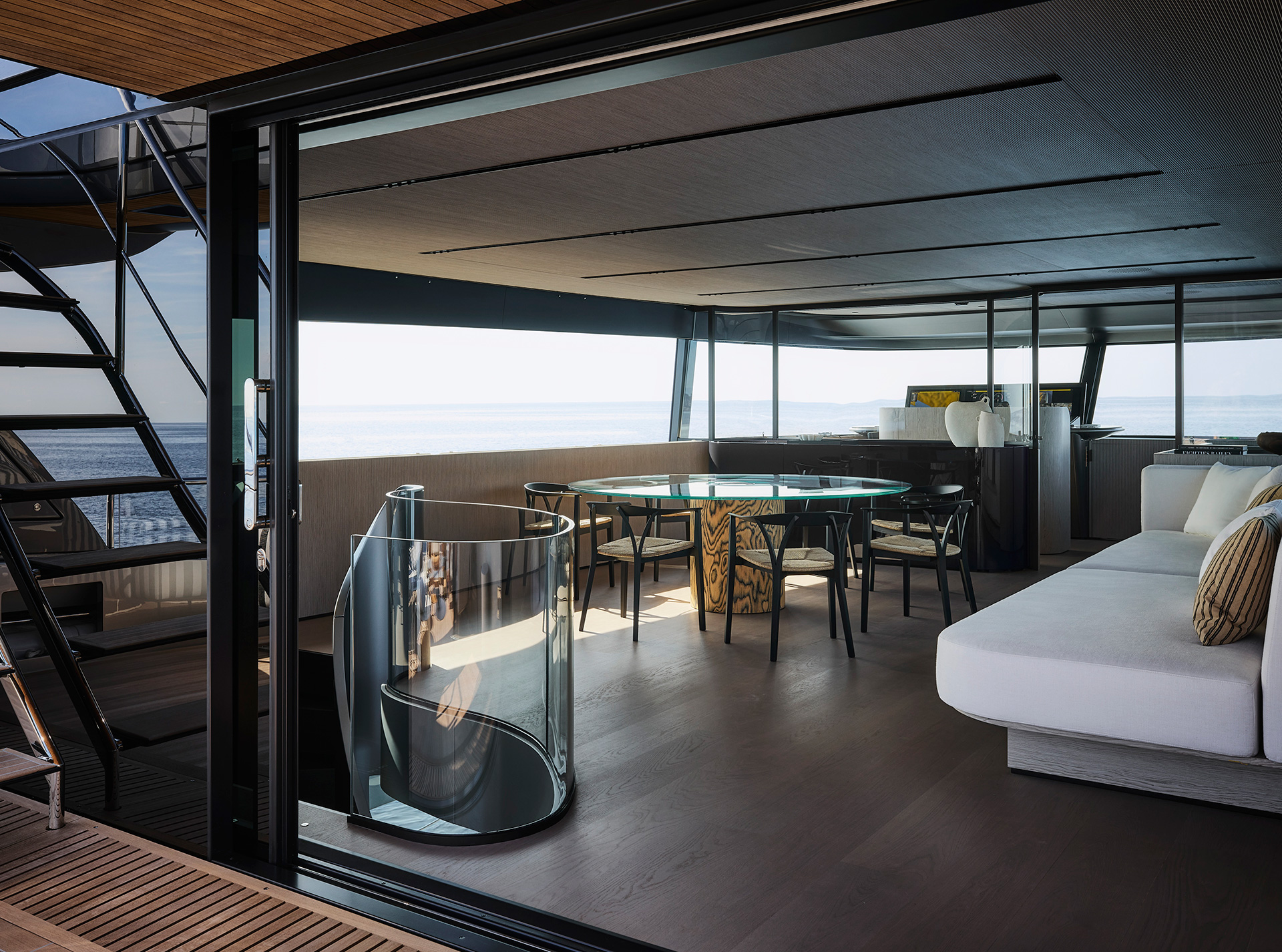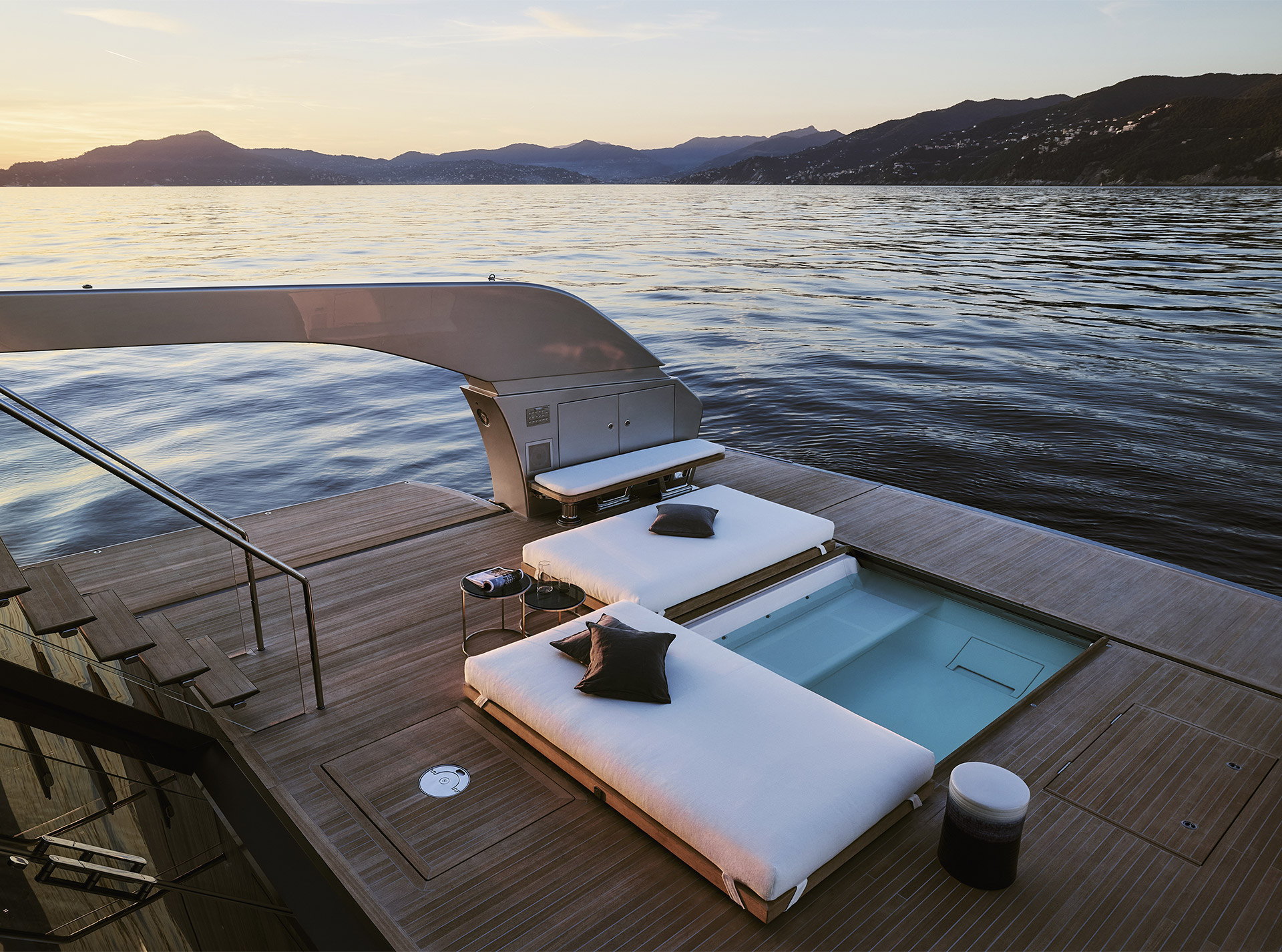 A synthesis between classic motoryacht with flying bridge and the explorer range. The largest SX offers expansive onboard spaces and a 70 sqm beach area with retractable pool and 360° panoramic views from the Upper Deck.