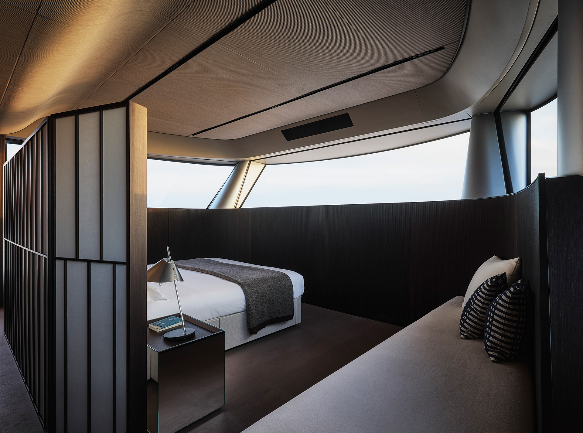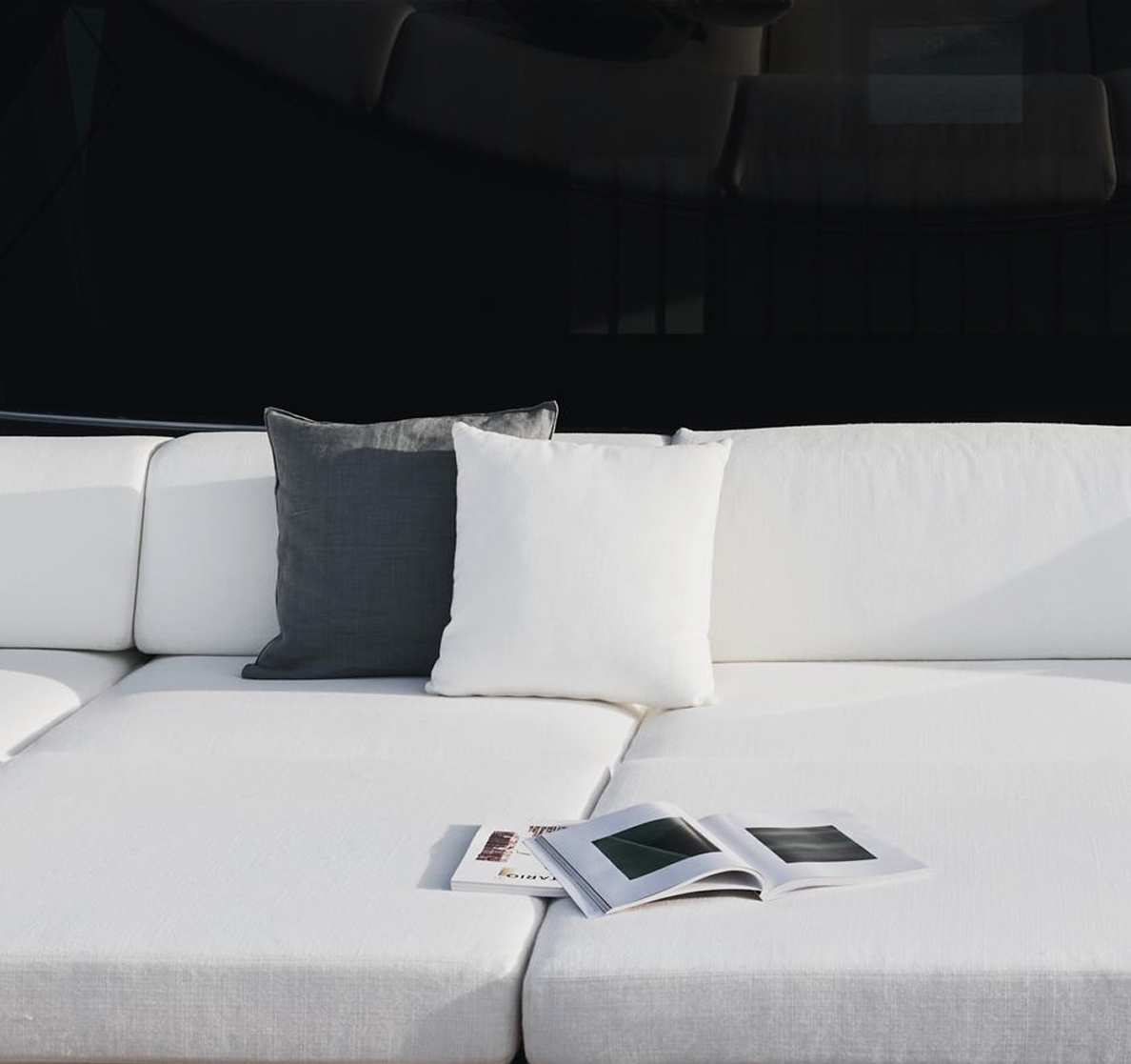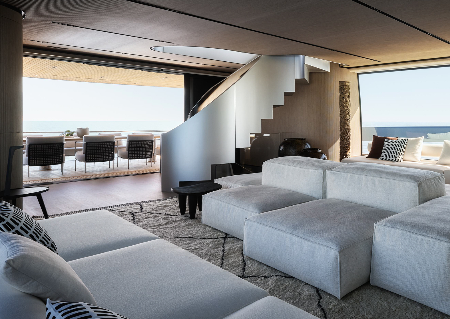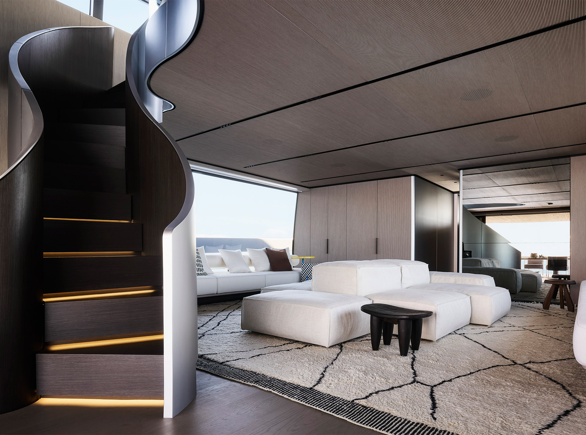 Interior spaces are defined by calm brightness and essential elegance, where light, refined materials and fluid layouts create a serene atmosphere, dissolving boundaries between inside and sea for effortless, contemporary living.