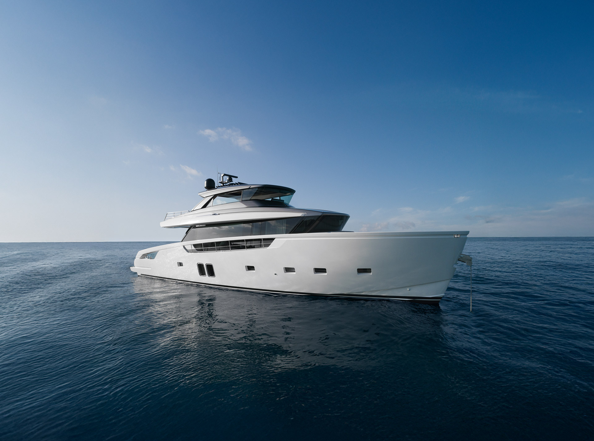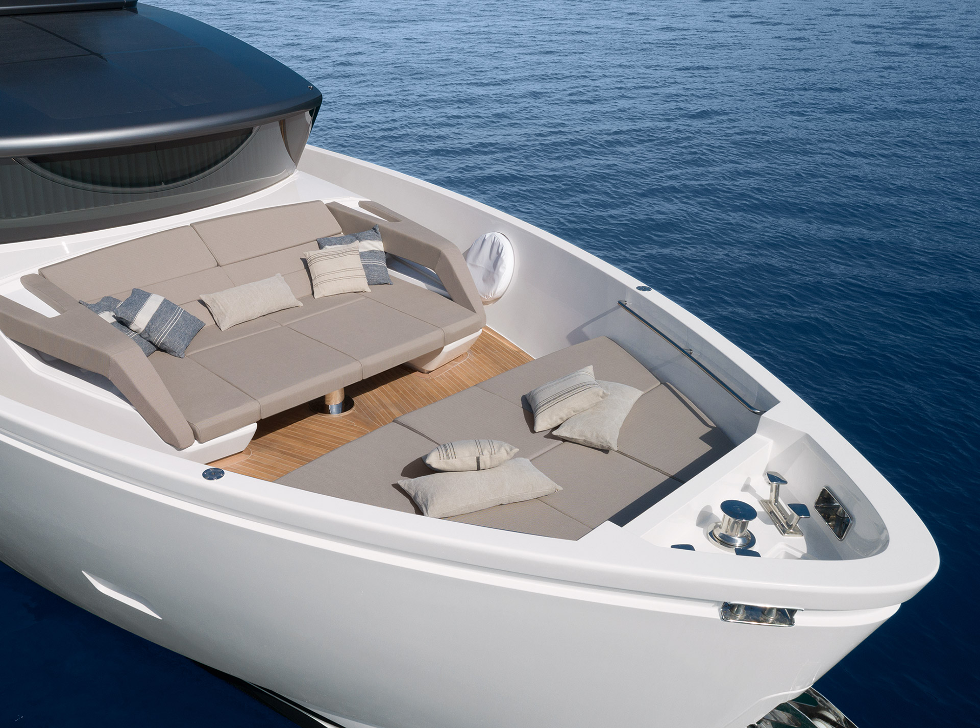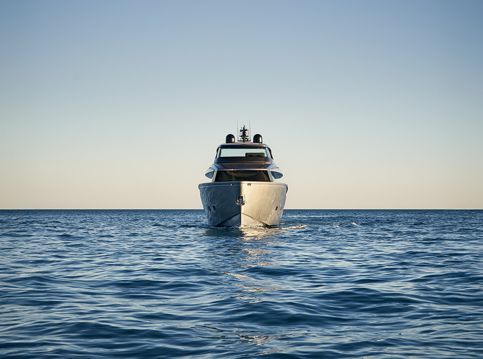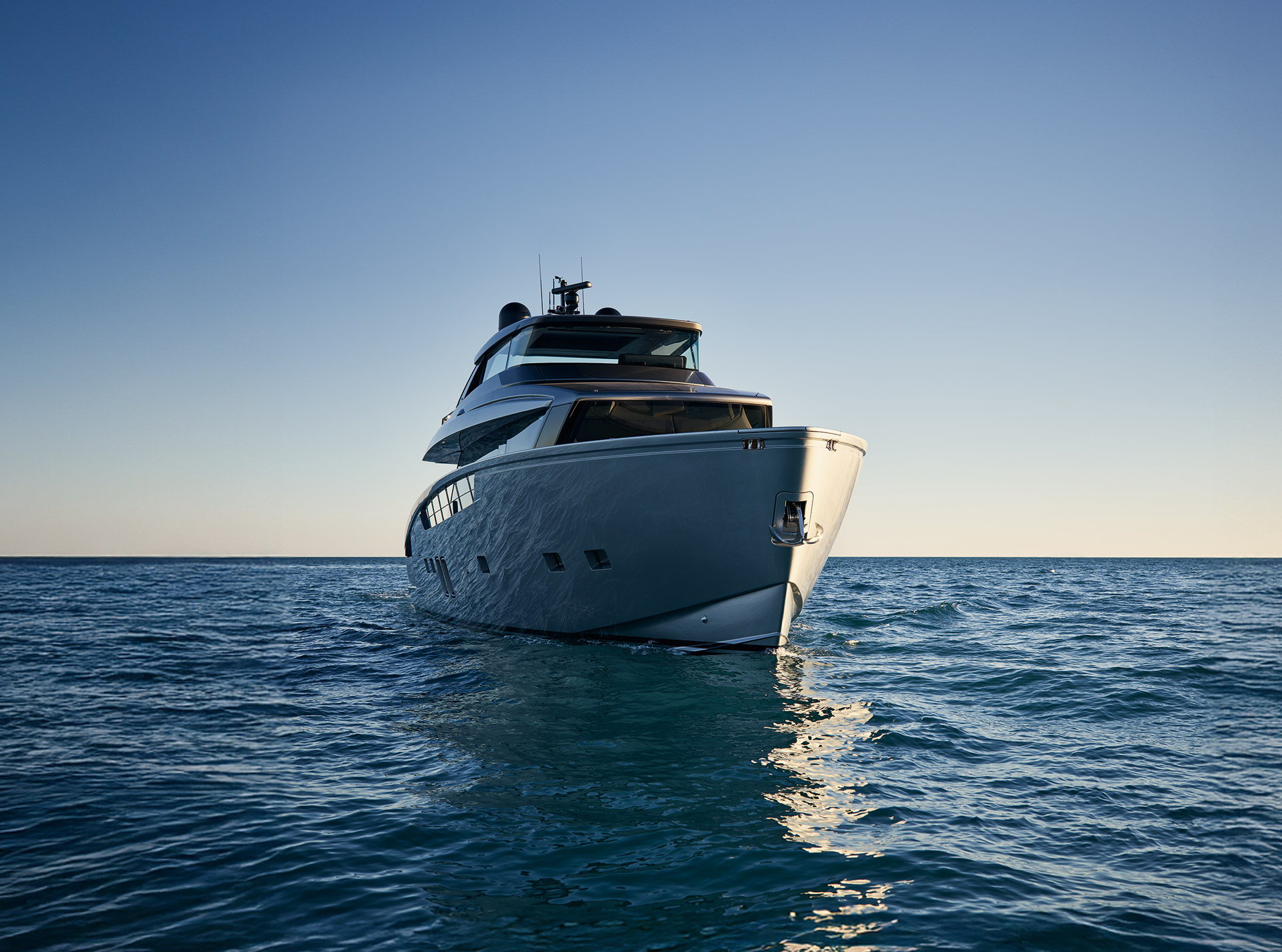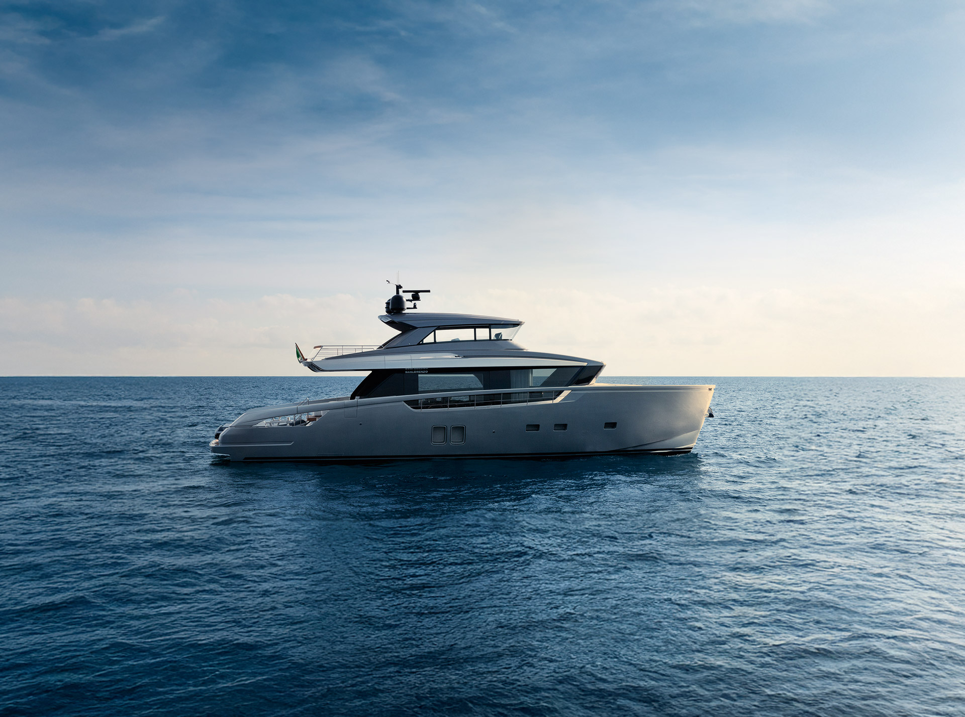 The exteriors balance sculpted volumes and expansive glazing, blending yacht elegance with explorer robustness. A high bow, slim stern profile and seamless indoor-outdoor flow express strength, lightness and unmistakable Sanlorenzo style.