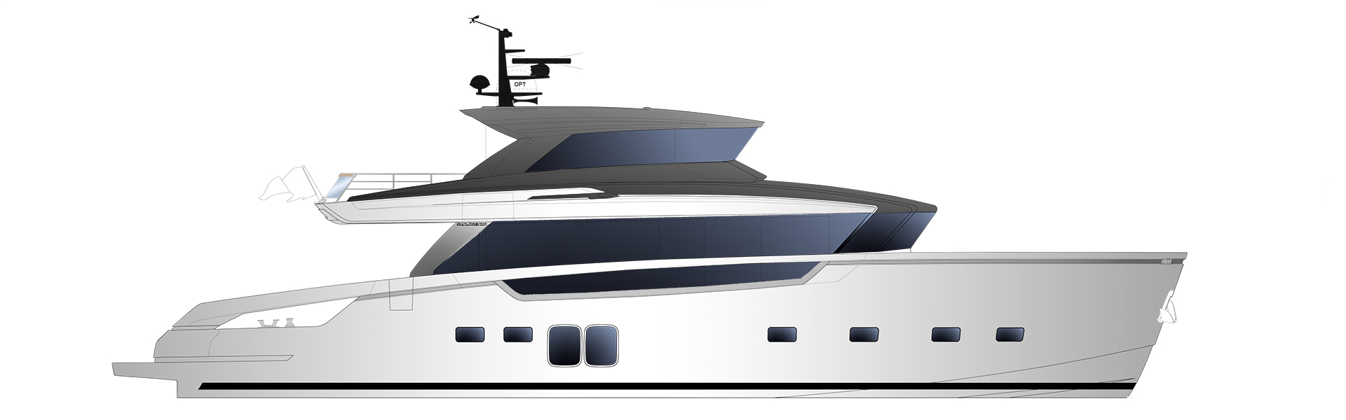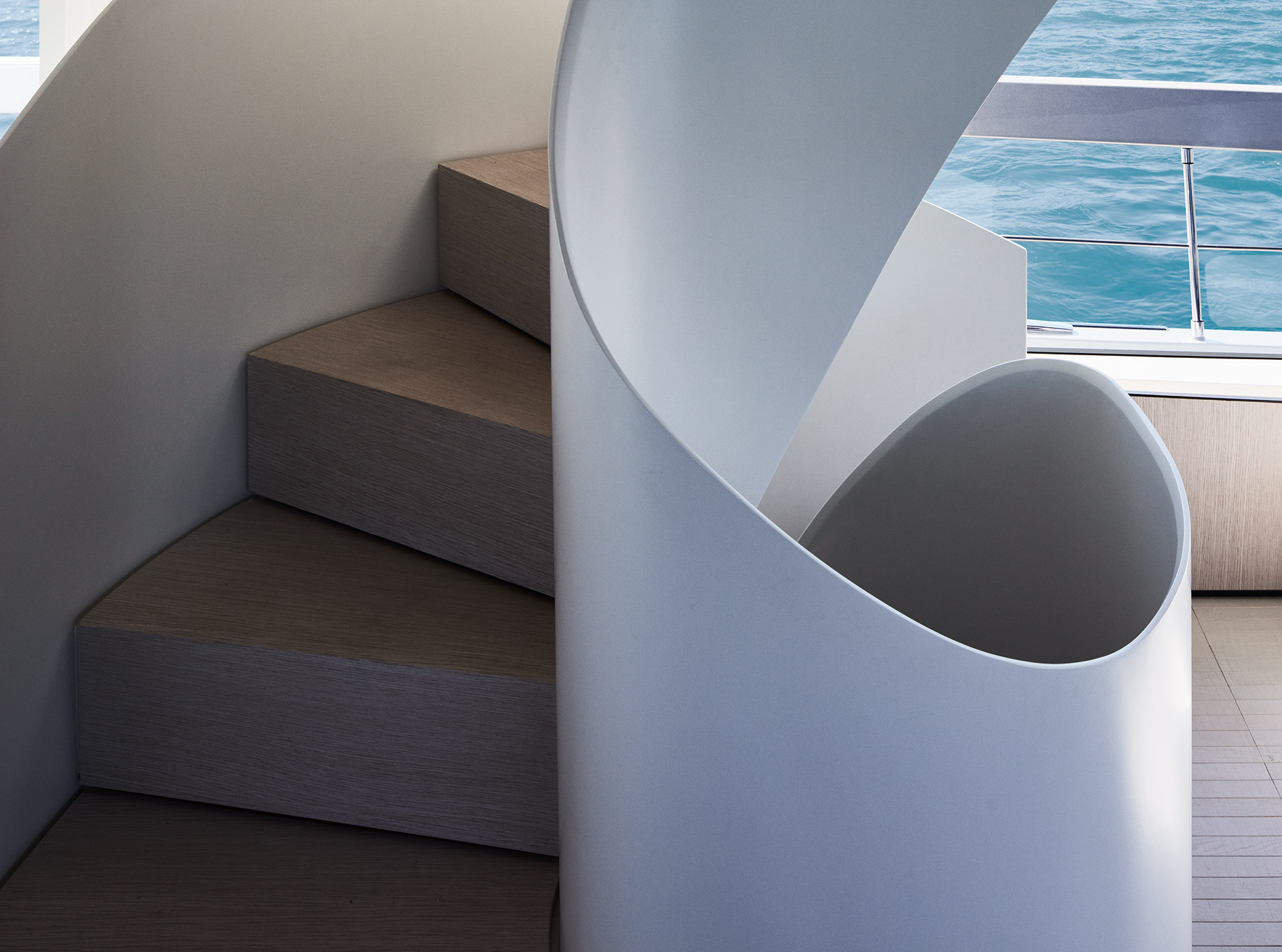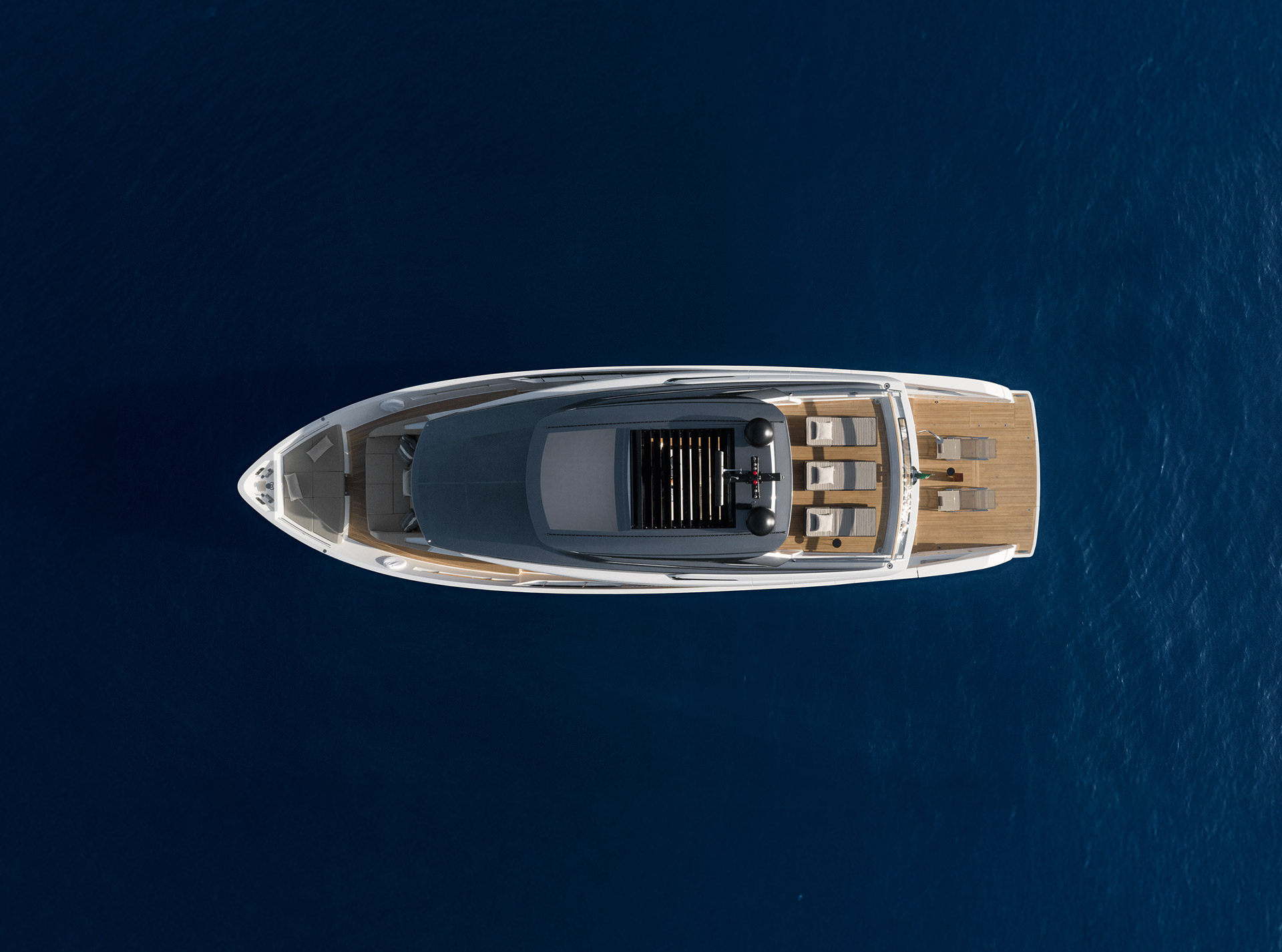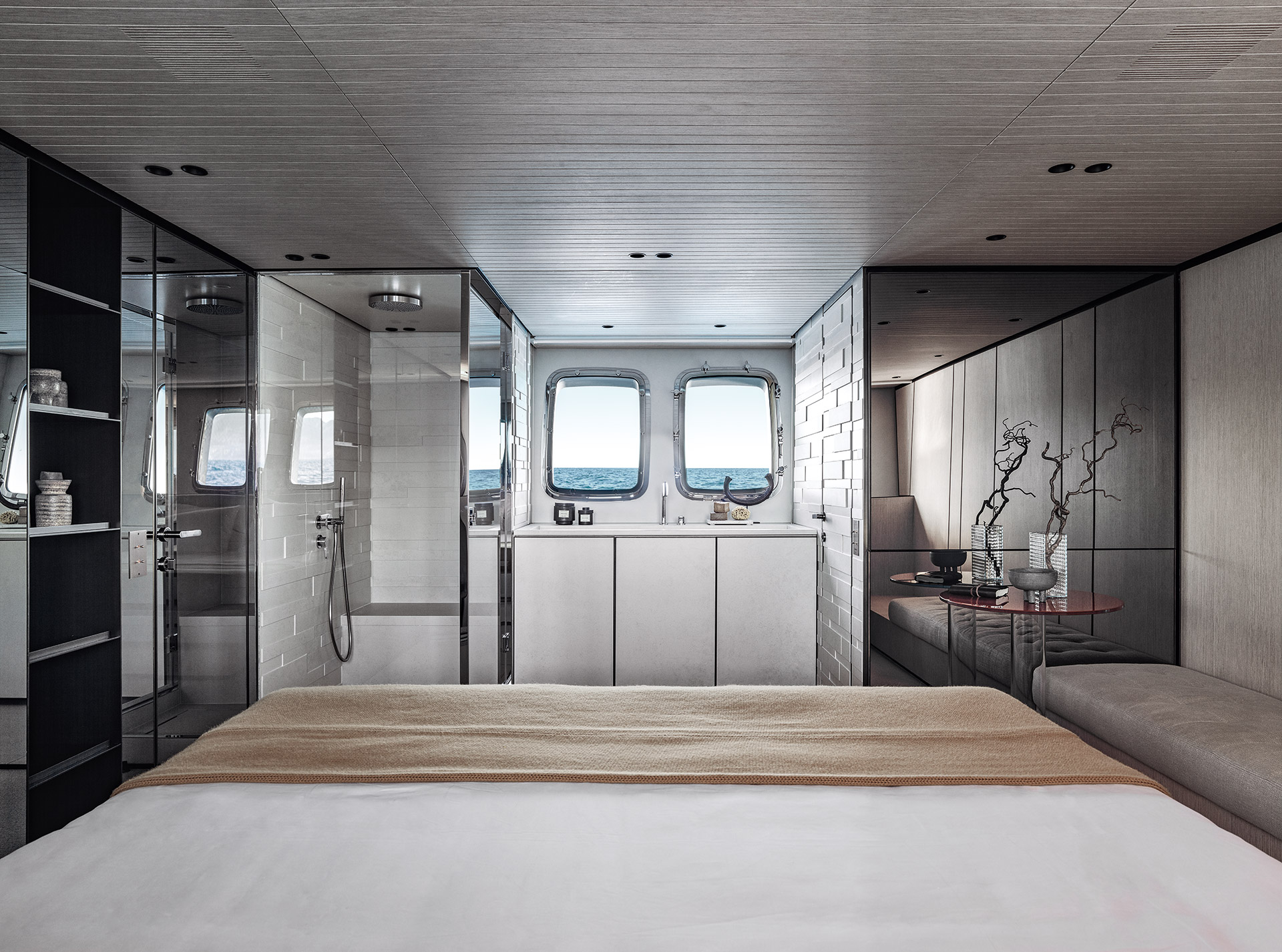 The exteriors balance sculpted volumes and expansive glazing, blending yacht elegance with explorer robustness. A high bow, slim stern profile and seamless indoor-outdoor flow express strength, lightness and unmistakable Sanlorenzo style.