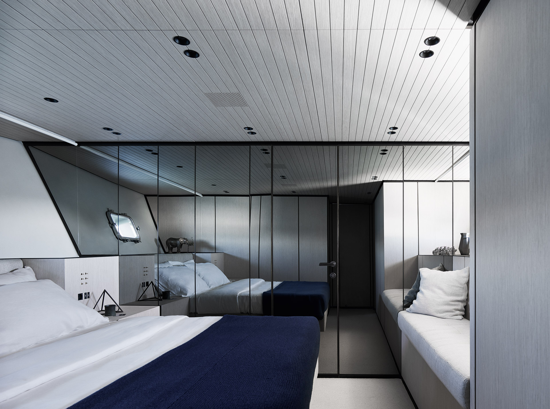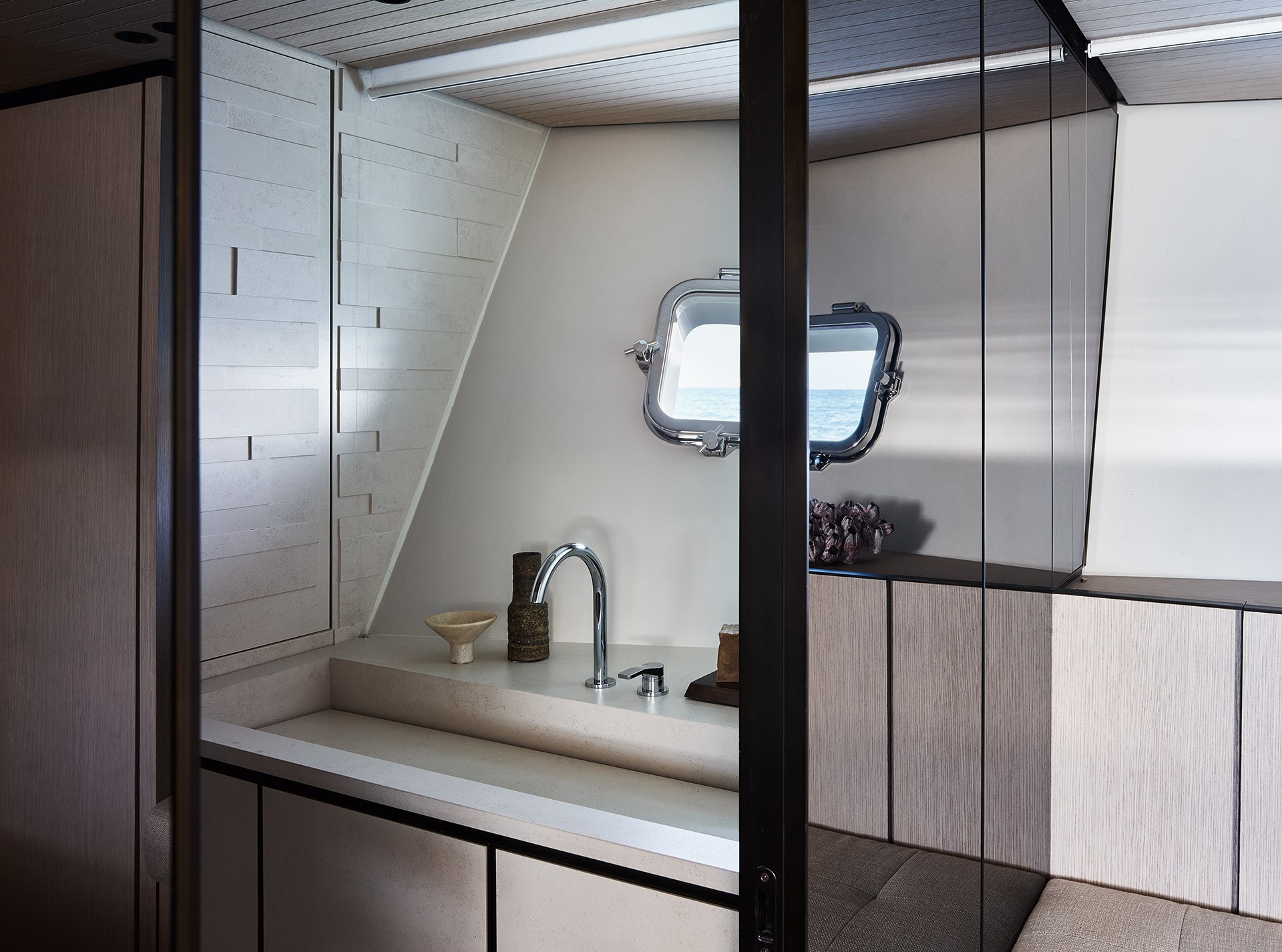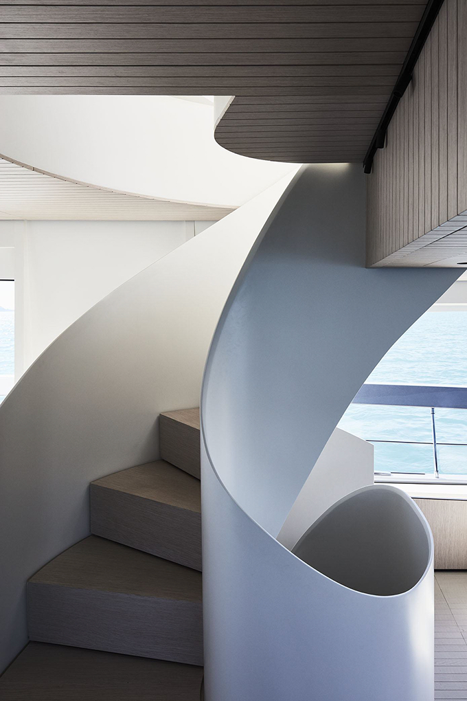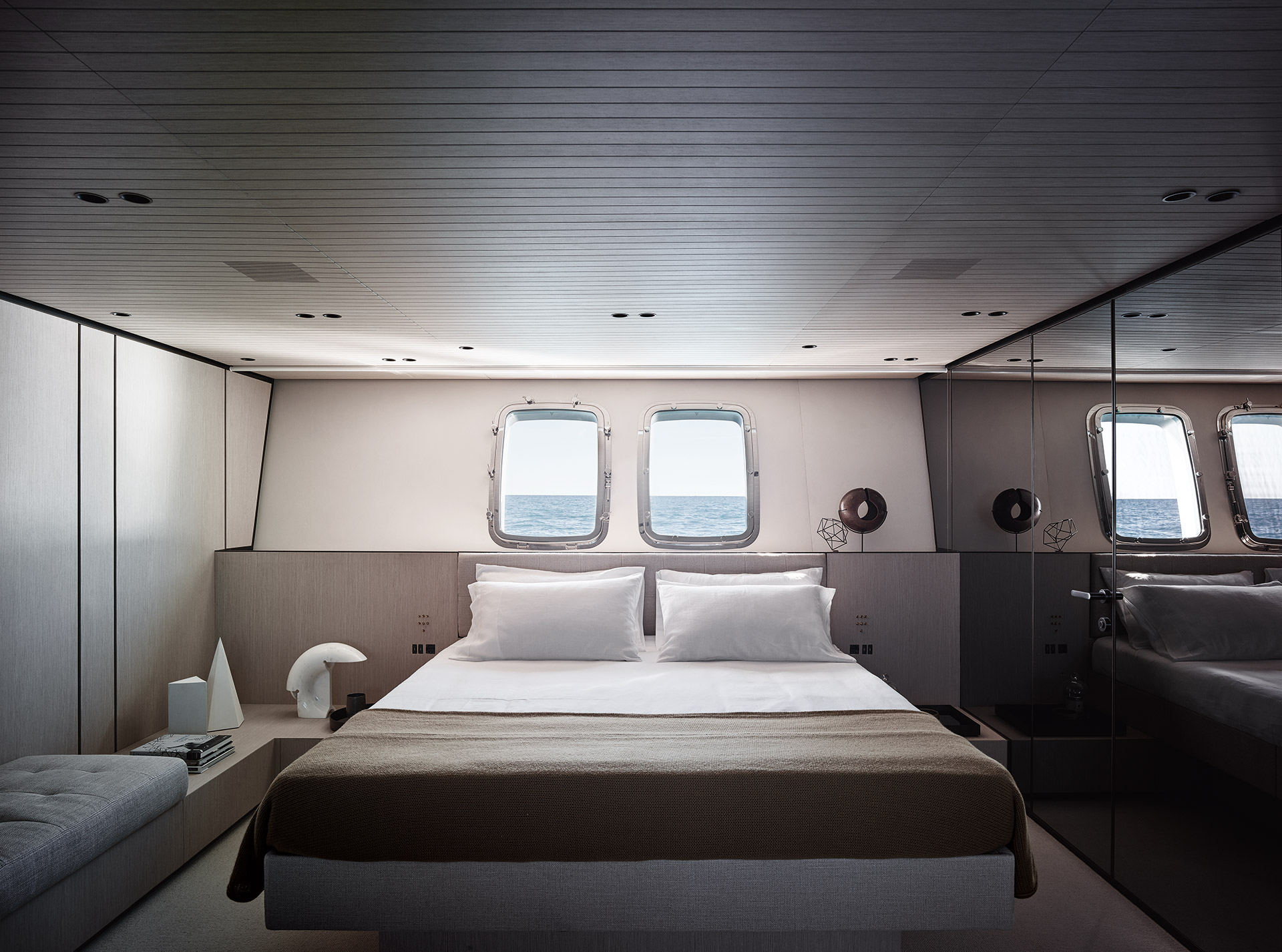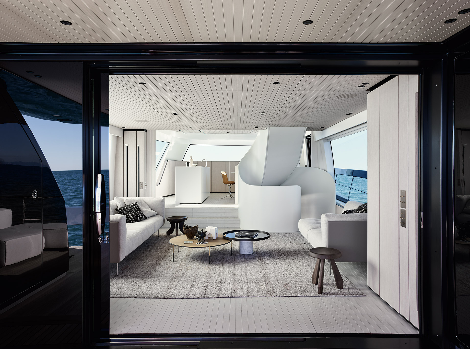 The exteriors balance sculpted volumes and expansive glazing, blending yacht elegance with explorer robustness. A high bow, slim stern profile and seamless indoor-outdoor flow express strength, lightness and unmistakable Sanlorenzo style.