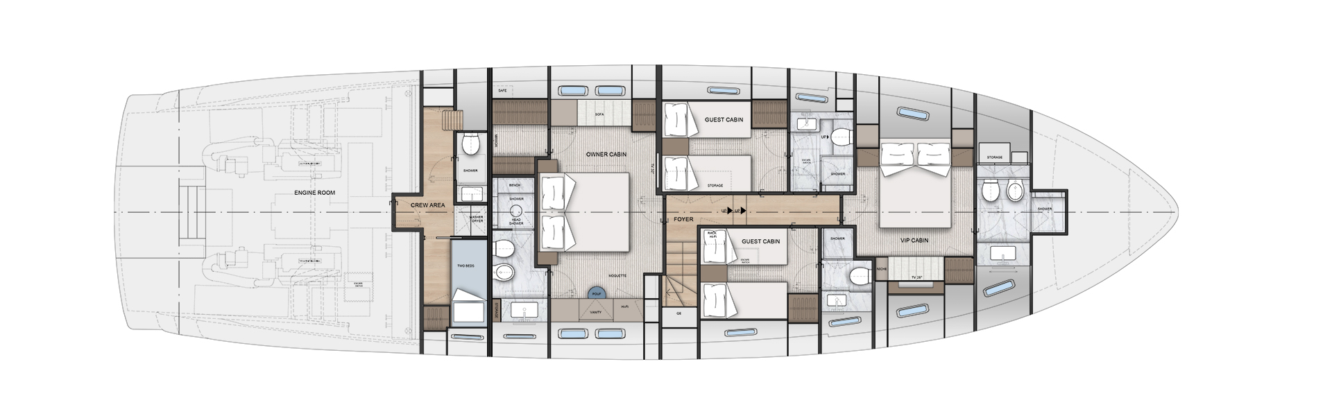 Intelligently designed layout ensures that every area onboard is both functional and inviting.A refined yet relaxed atmosphere perfect for both intimate gatherings and extravagant celebrations.
