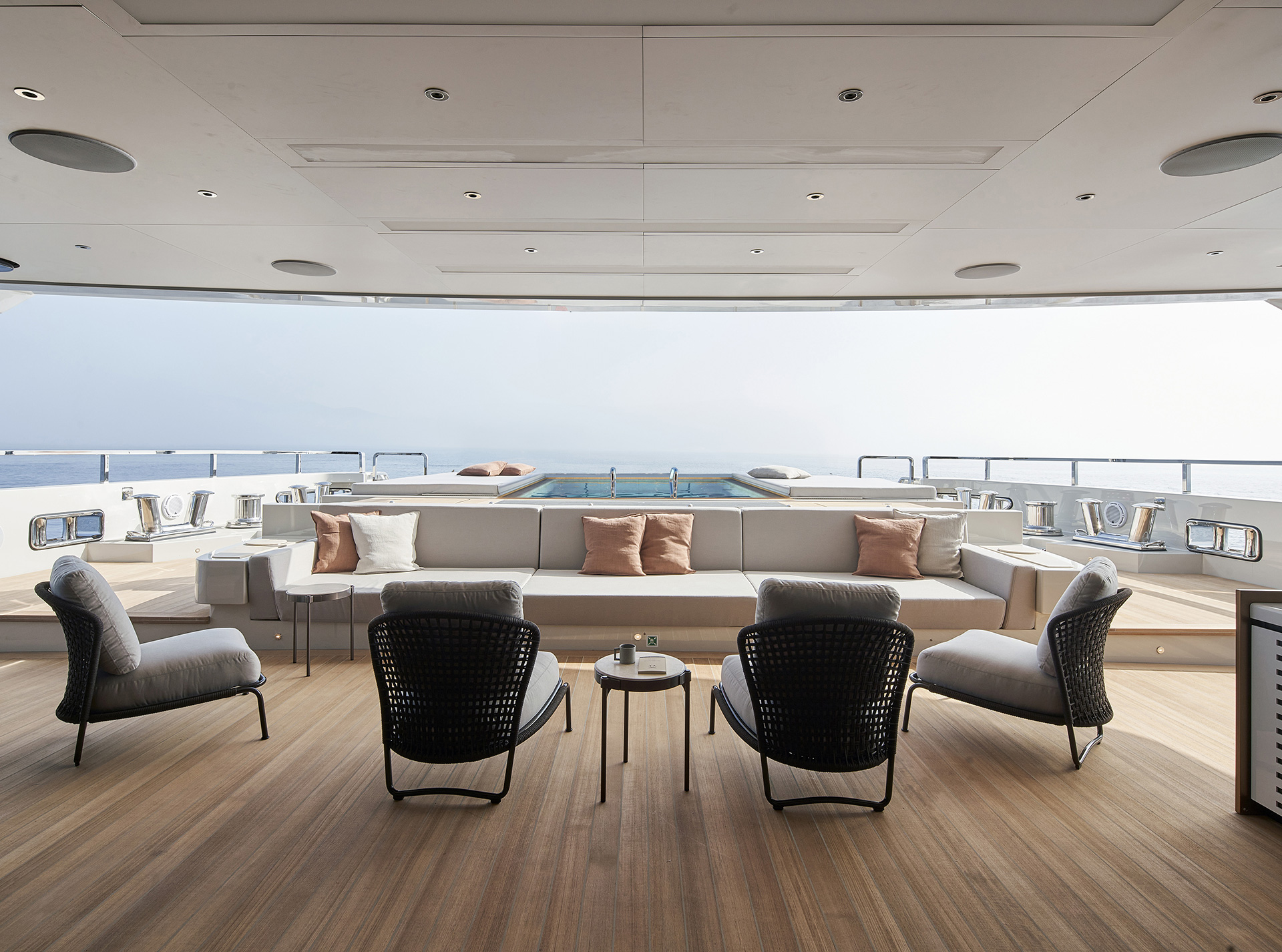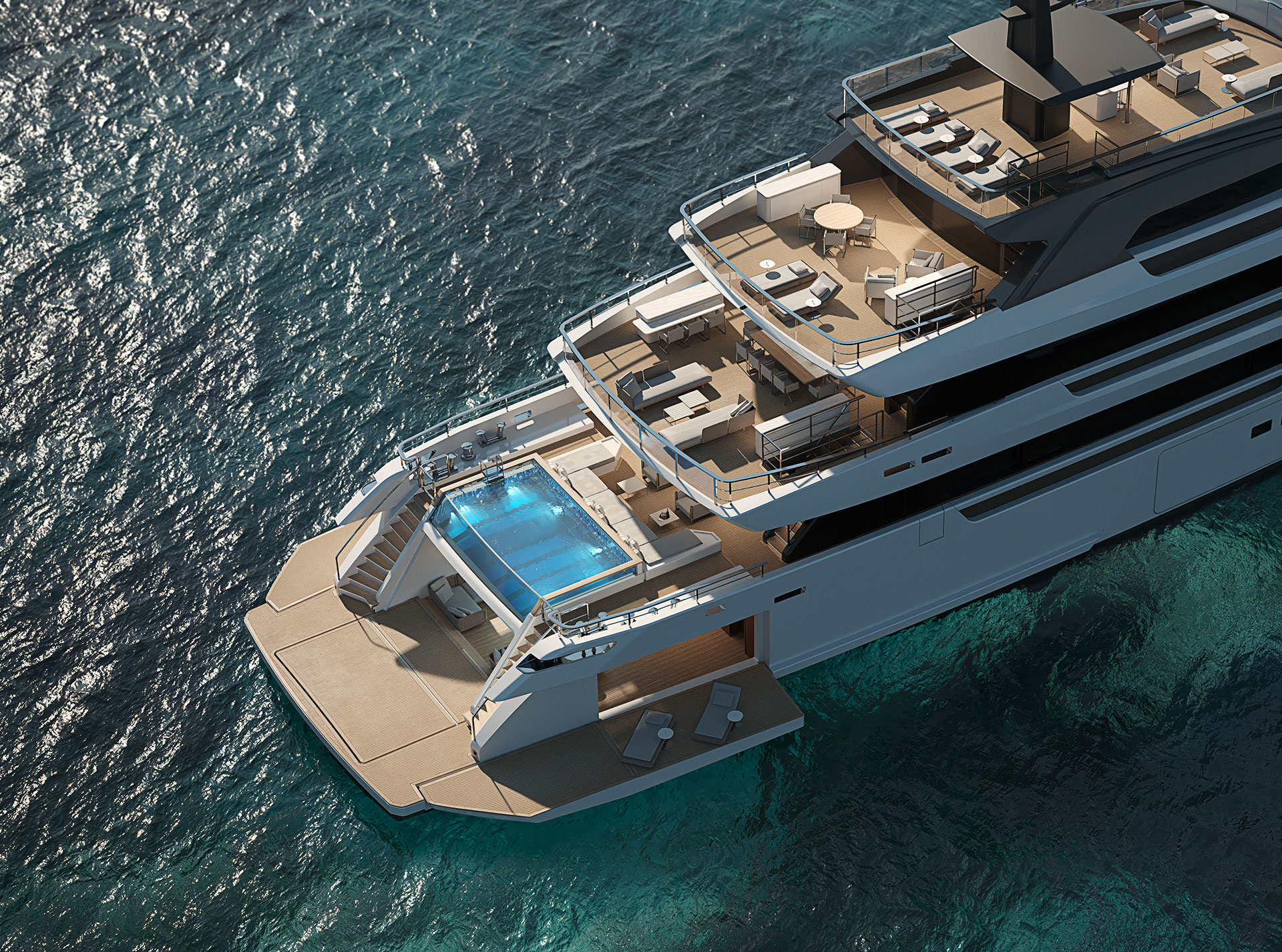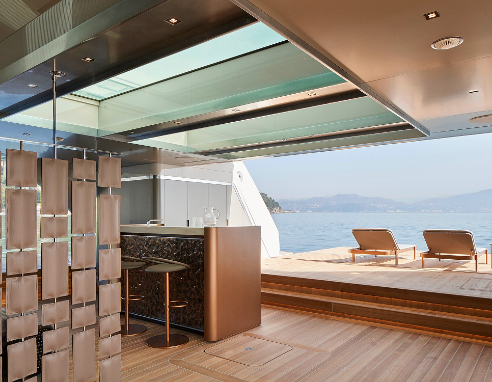 “Il layout ci consente di integrare il più possibile il ponte di poppa principale e il beach club, permettendo di godere di entrambe le aree, attorno alle quali si concentra la vita sociale a bordo senza separare gli ospiti.”