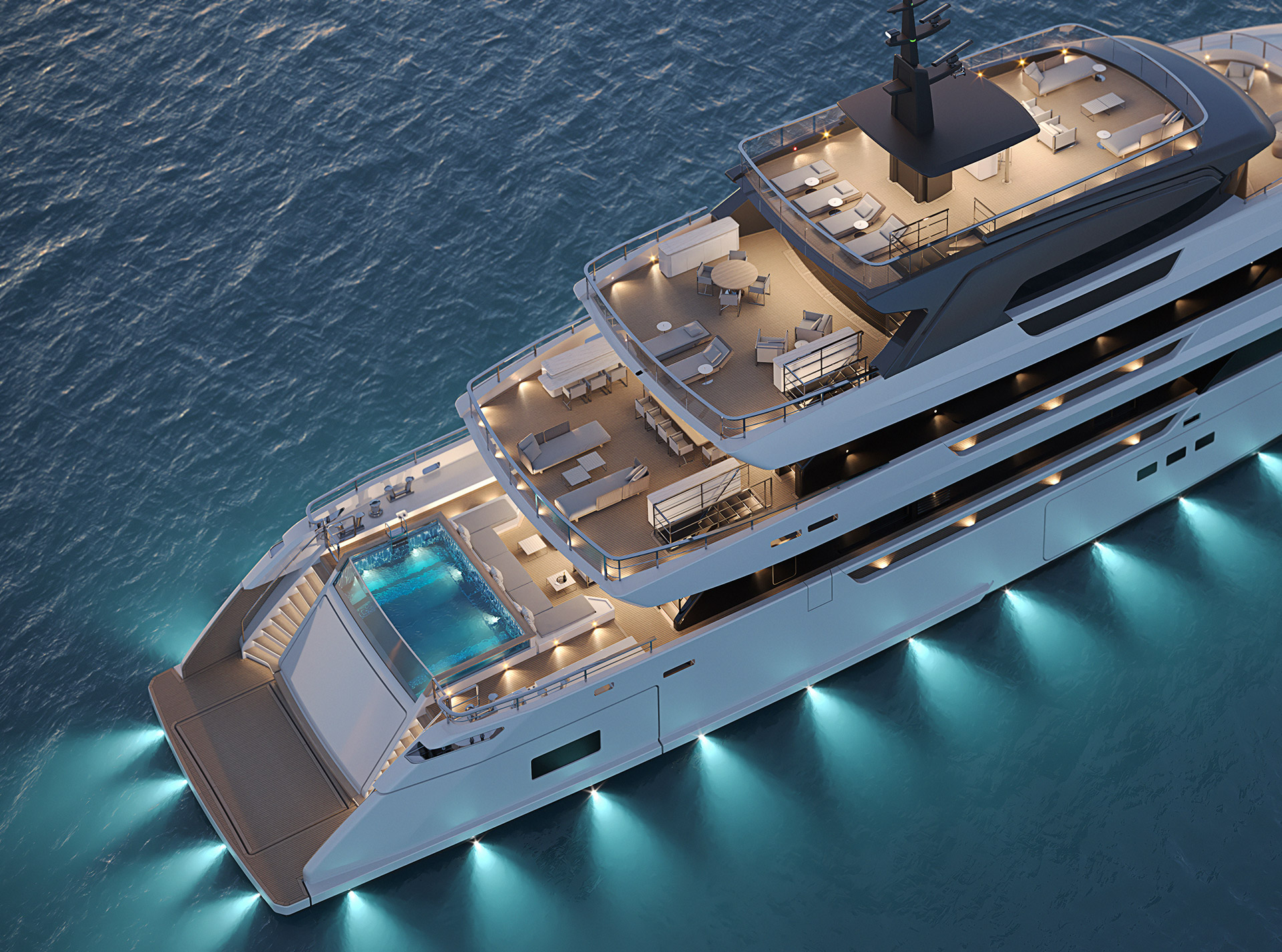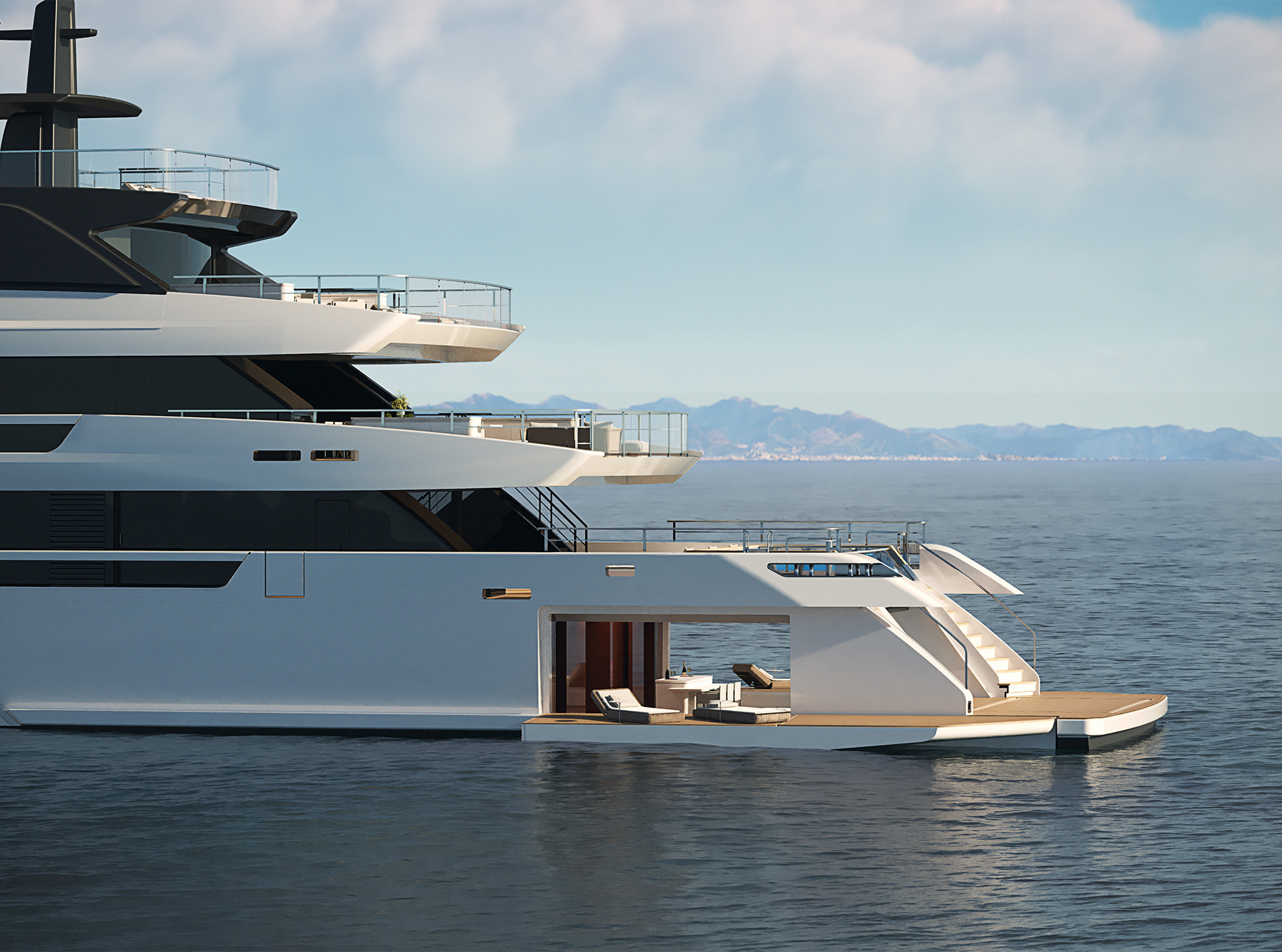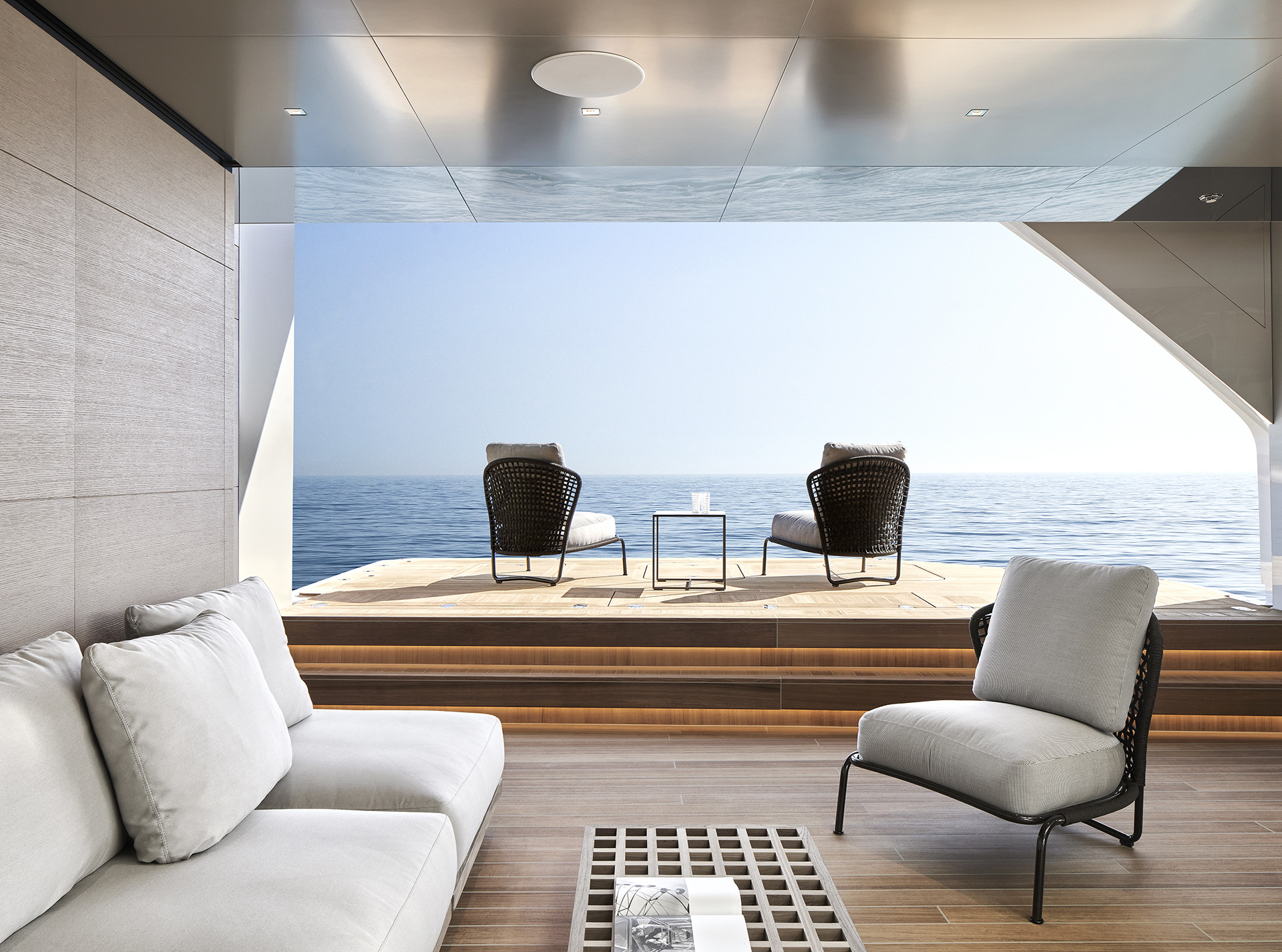 “Il layout ci consente di integrare il più possibile il ponte di poppa principale e il beach club, permettendo di godere di entrambe le aree, attorno alle quali si concentra la vita sociale a bordo senza separare gli ospiti.”