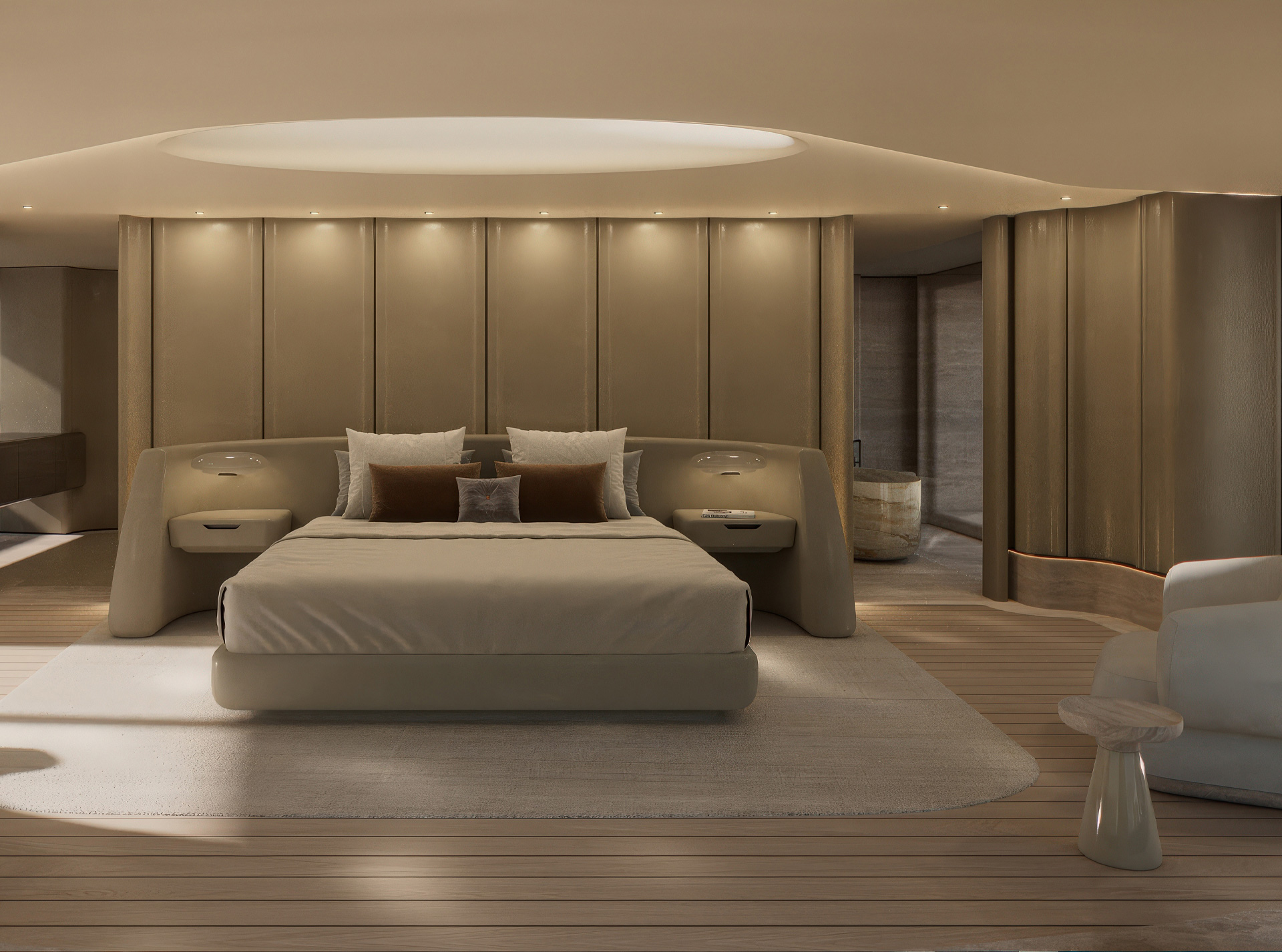 Interni completamente custom concepiti come un paesaggio personale, dove proporzioni, materiali e luce si modellano attorno a una visione unica. Ogni ambiente riflette un’identità distinta, interpretata con precisione e misurata essenzialità.