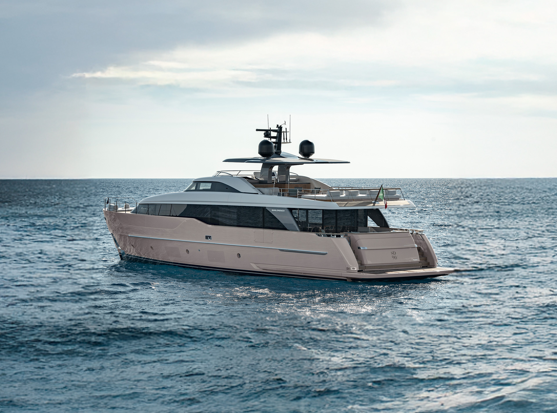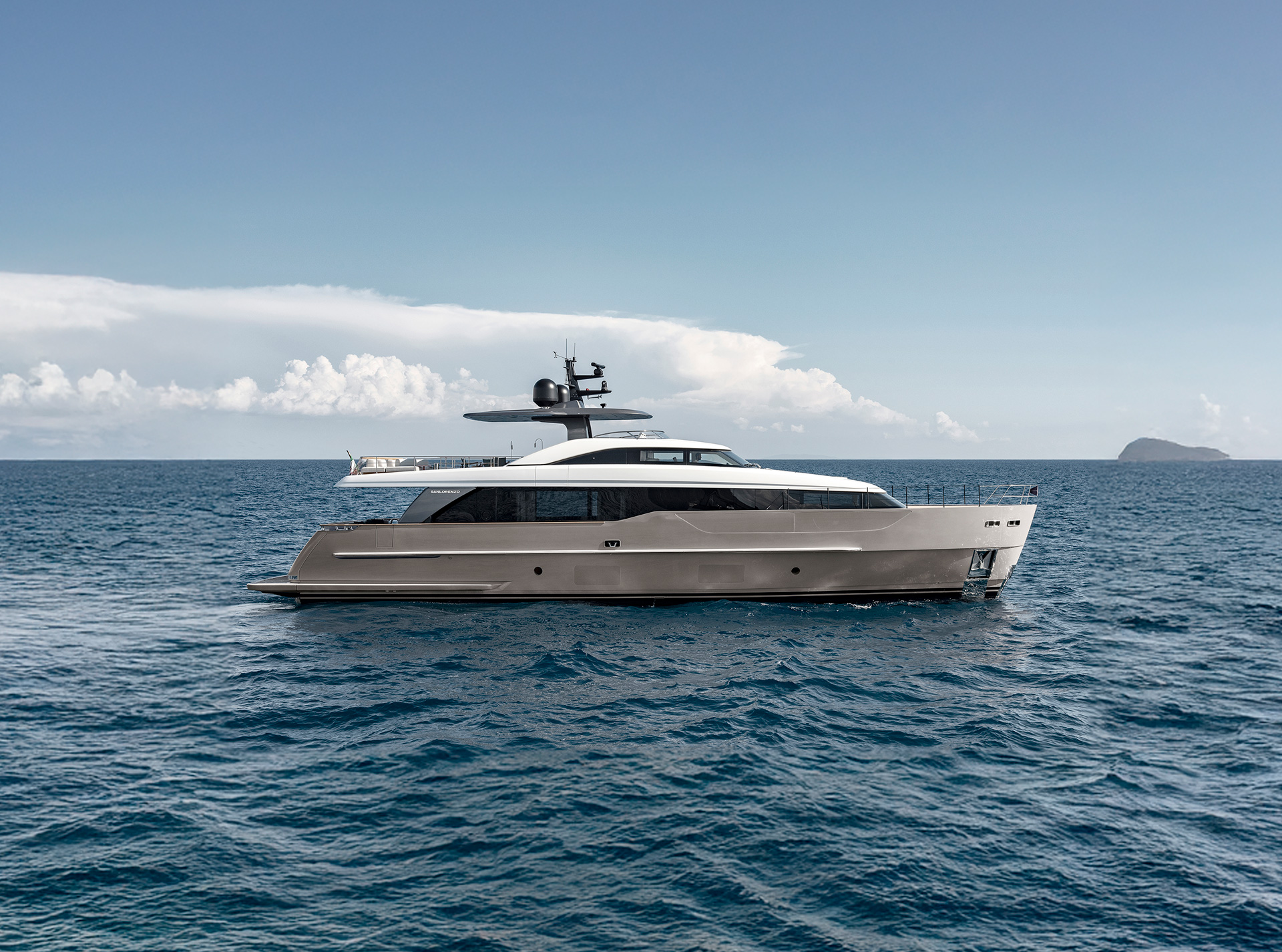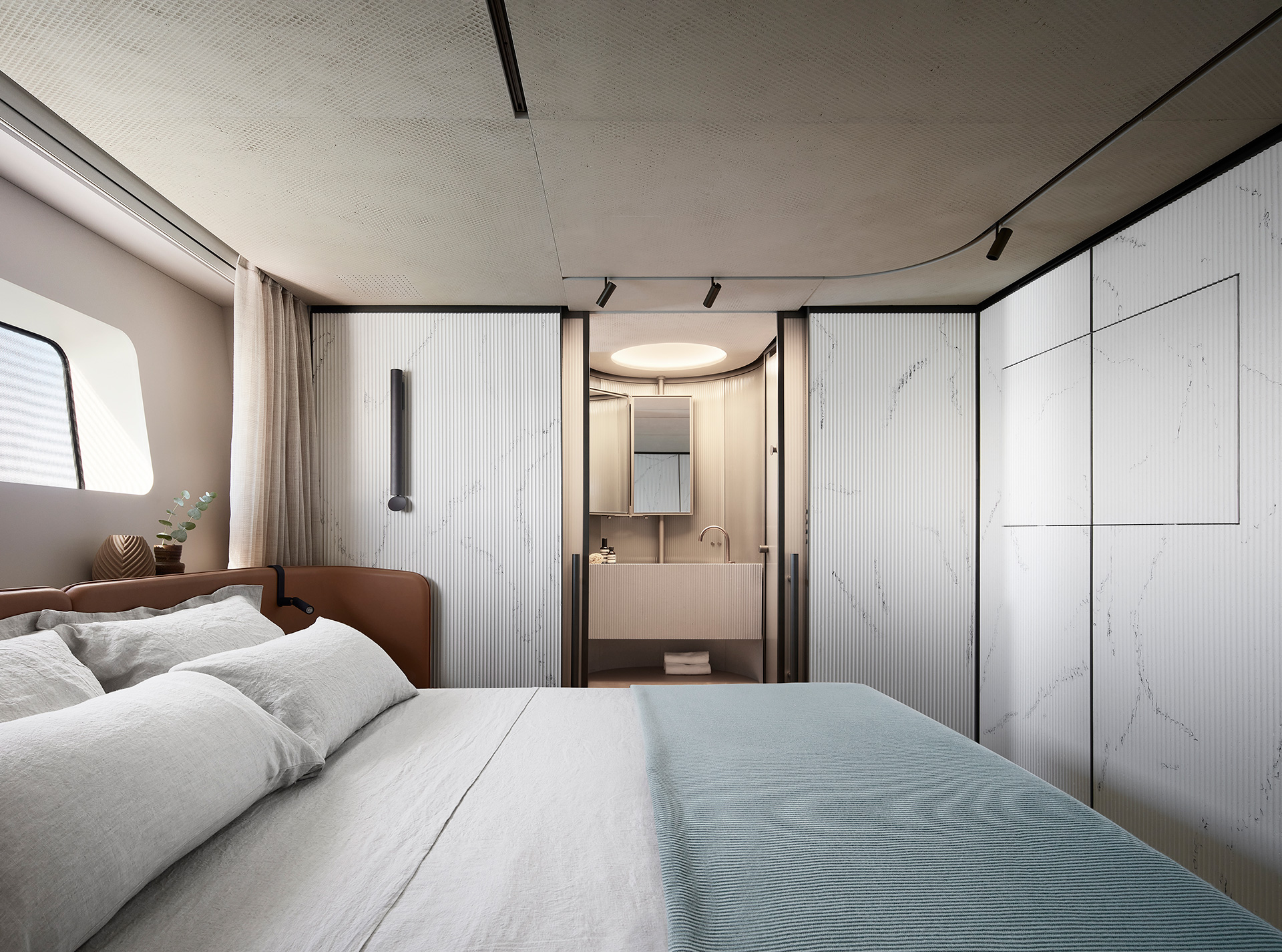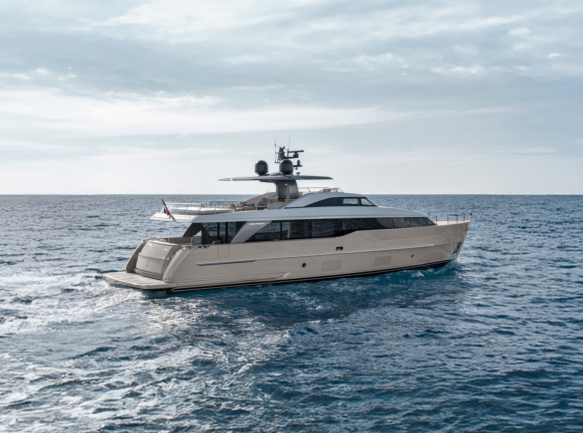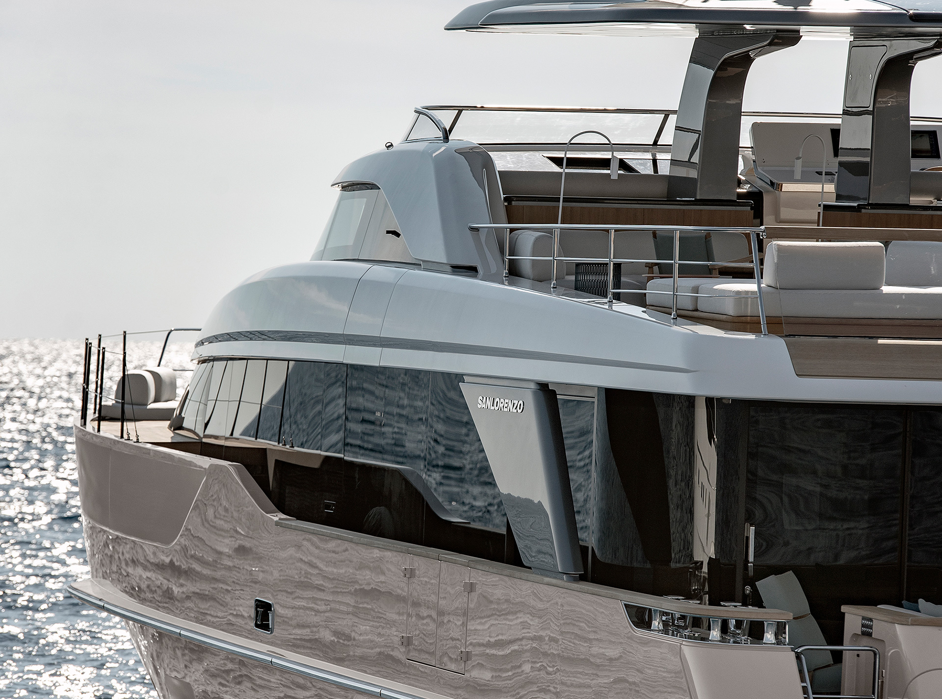Gli interni creano un'atmosfera calma e tranquilla, unendo spazi comuni e privati attraverso grandi vetrate e passaggine ben studiati. Materiali raffinati e layouts su misura, ampliano il comfort, la chiarezza degli spazi e la naturale fluidità tra la vita esterna e interna in mare.
