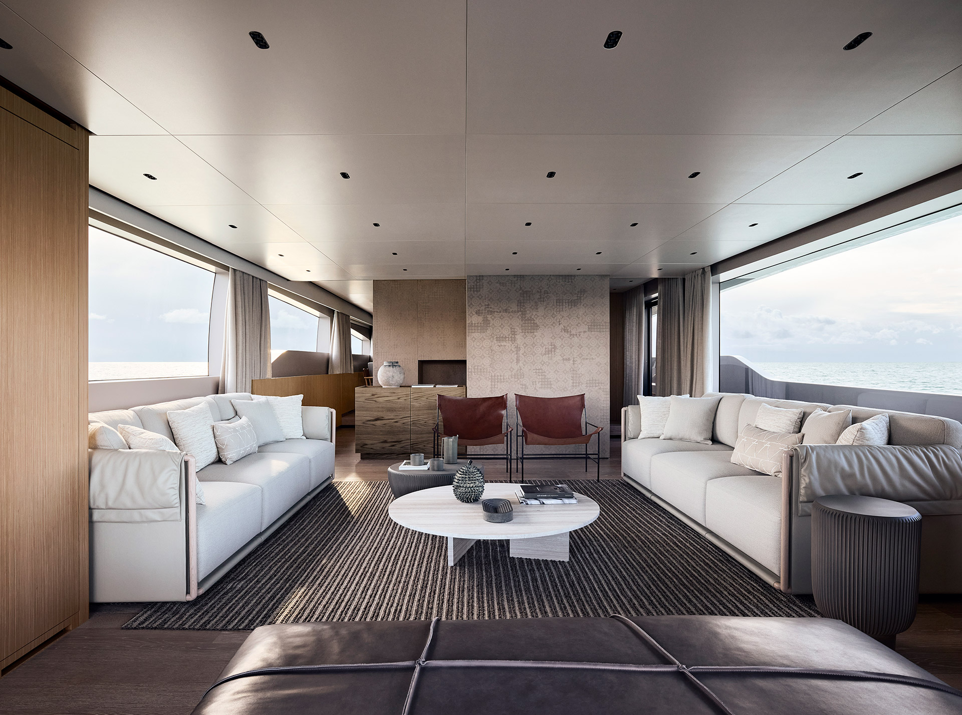 Volumi interni significativamente ampliati creano un dialogo visivo ininterrotto con il paesaggio marino. Le ampie vetrate a tutta altezza inondano gli spazi di luce naturale, offrendo una sensazione di apertura amplificata.
