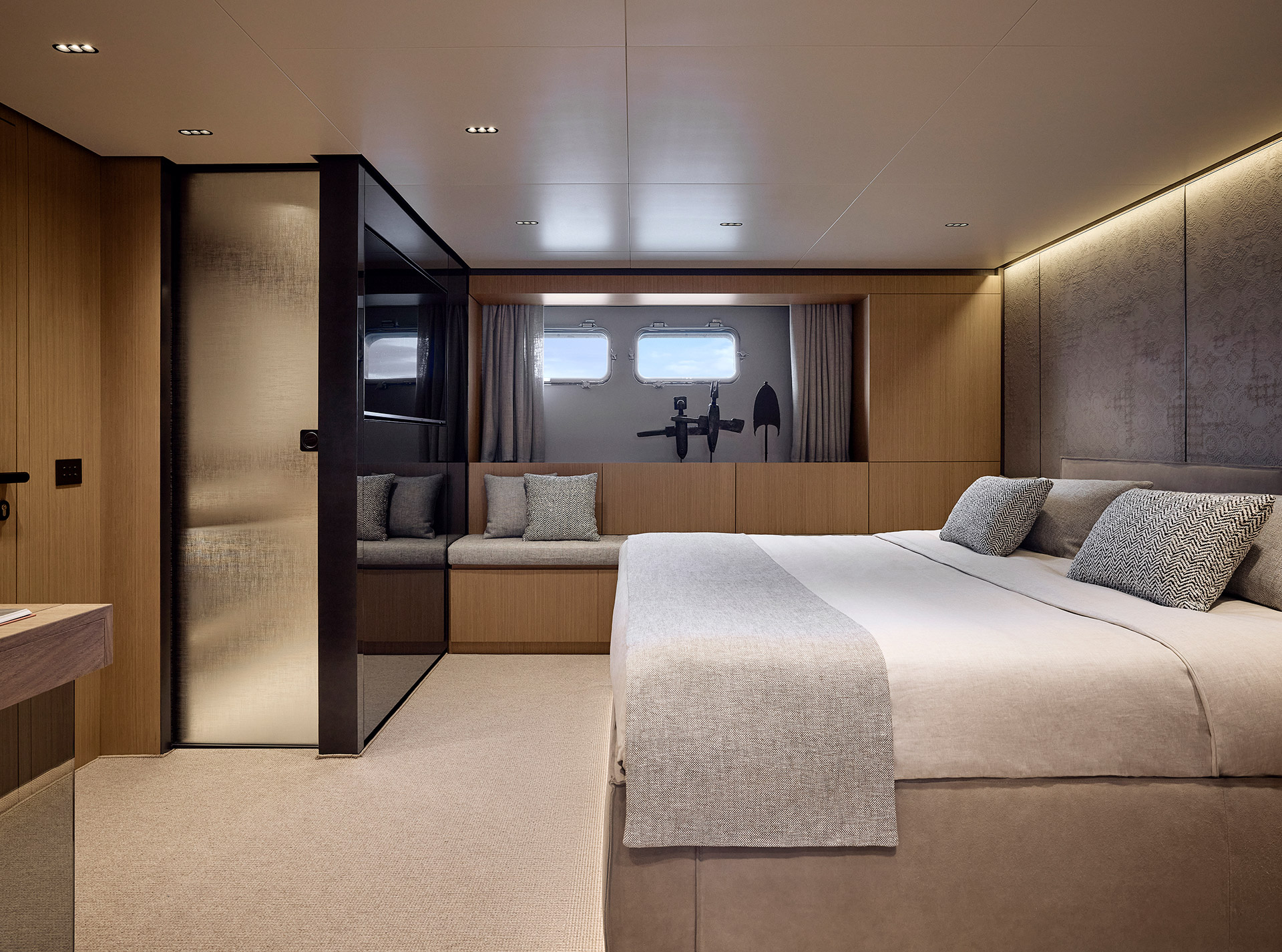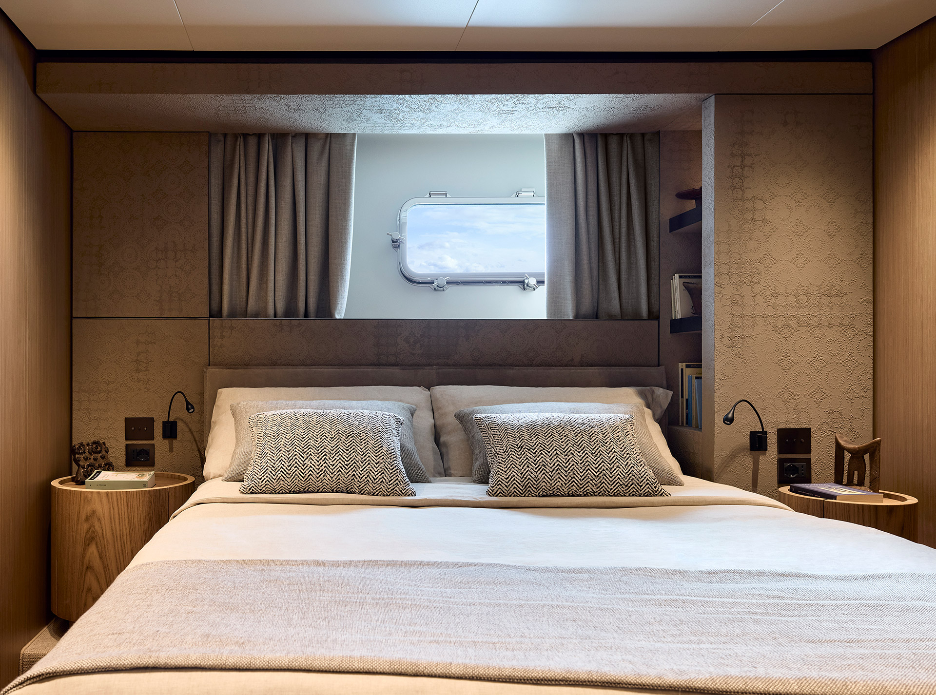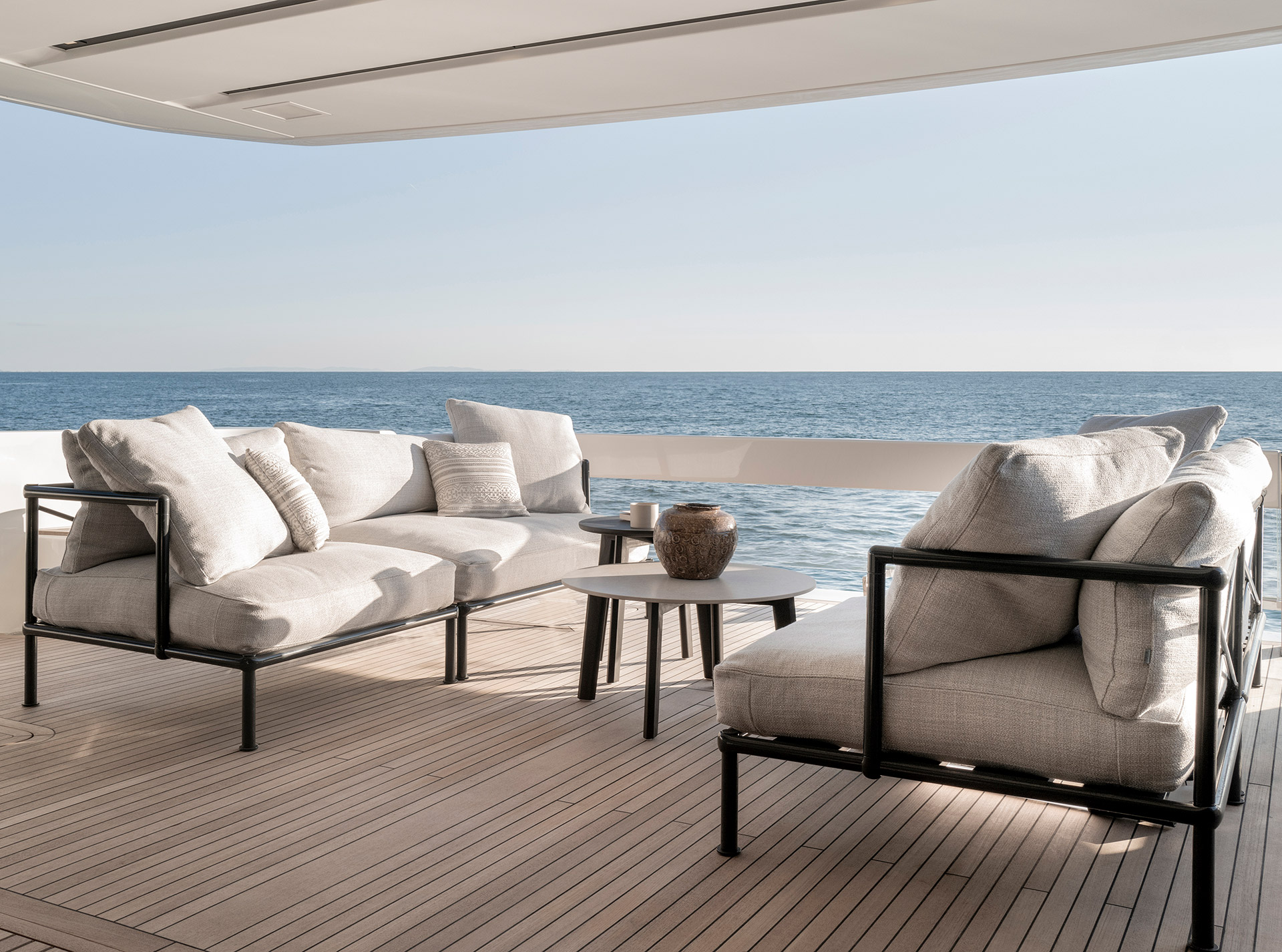 Un design asimmetrico pionieristico che ridefinisce le dinamiche dello spazio.Sensazione di apertura e di connessione con il mare amplificata.