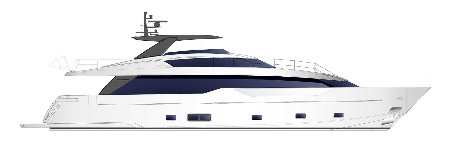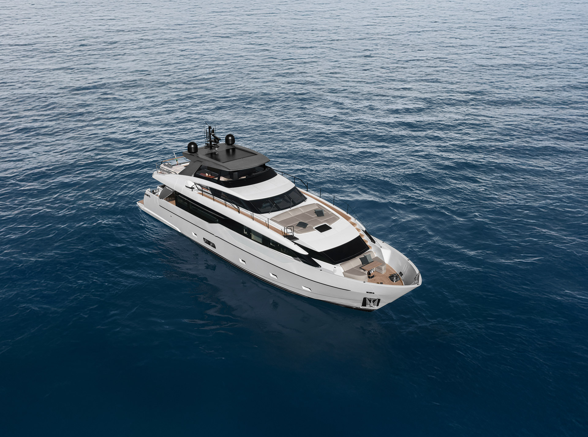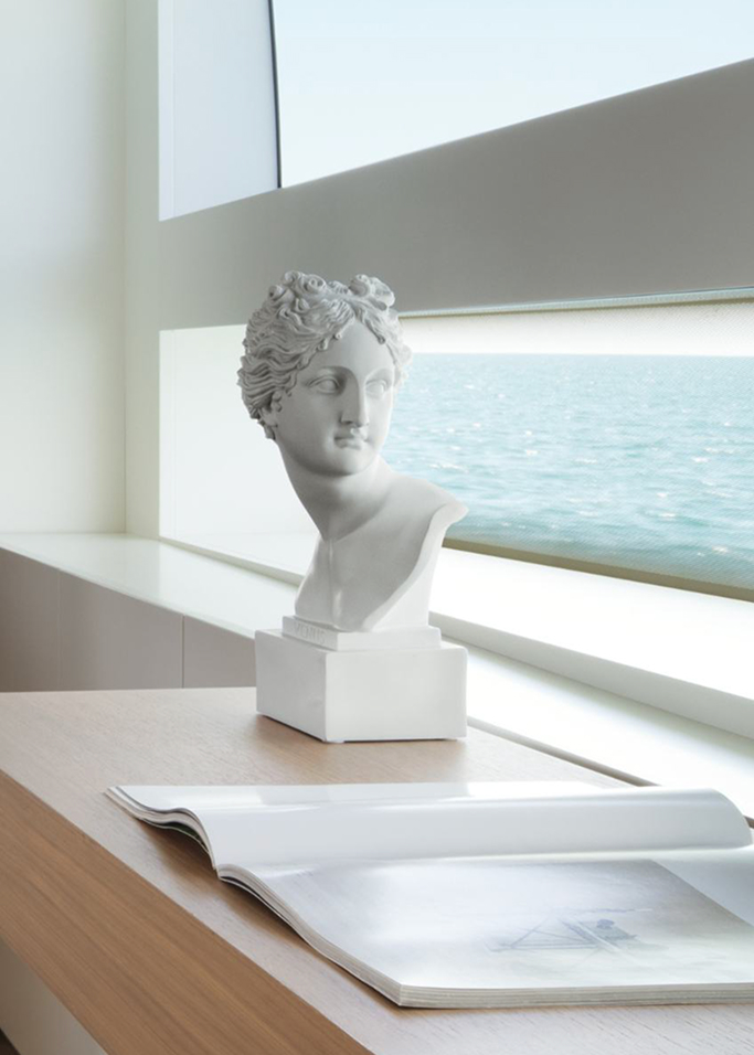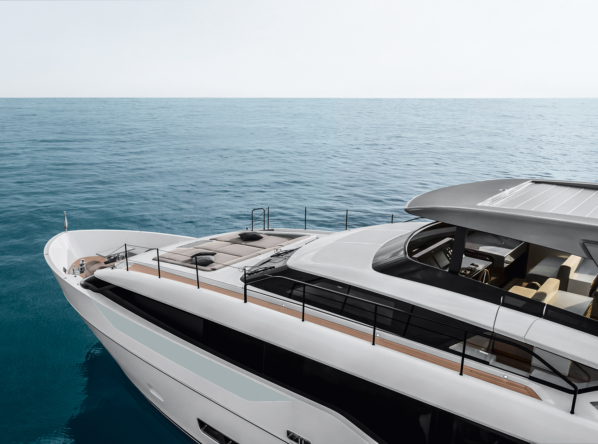 Espressione di asimmetria sapientemente interpretata attraverso linee sinuose ed eleganti. Le vetrate “One Way”, cromaticamente integrate allo scafo, smaterializzano visivamente le aperture, esaltando continuità, luminosità e una connessione diretta con il mare.