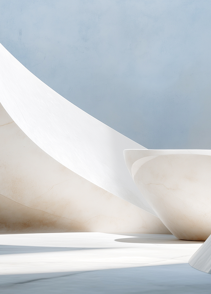 Reinterpretazione dell’asimmetria come un gesto creativo.Spazio e luce si aprono a una nuova, assoluta idea di libertà.