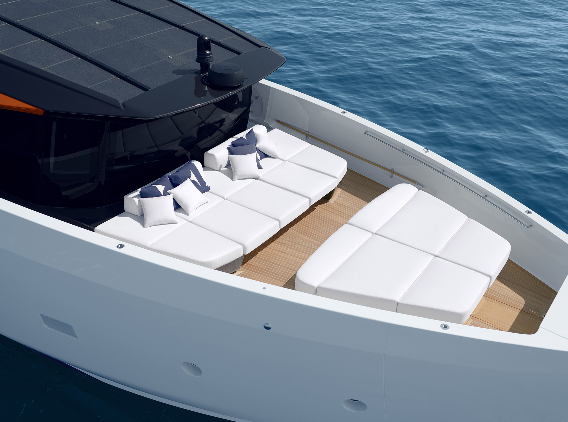 Geometria avanzata dello scafo, propulsione a idrogetto e controllo dinamico dell’assetto garantiscono prestazioni elevate con comfort ed efficienza. Materiali compositi leggeri, pannelli solari integrati e sistemi ottimizzati riducono i consumi migliorando autonomia, silenzio e facilità d’uso.