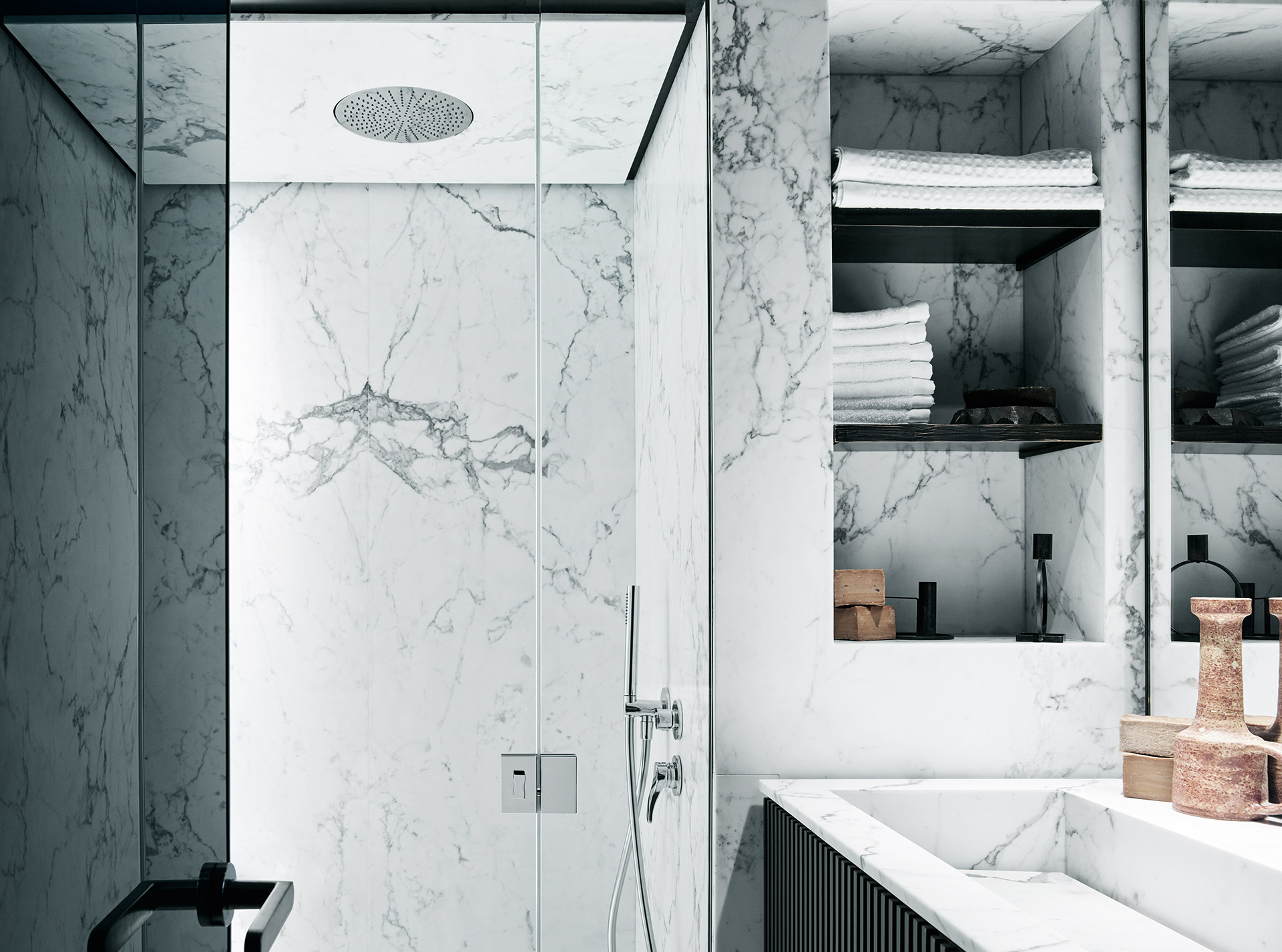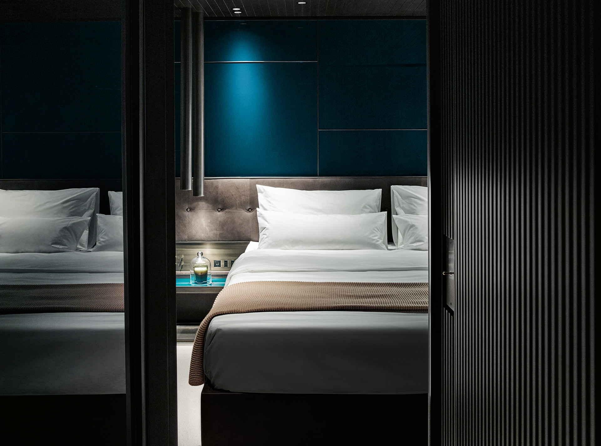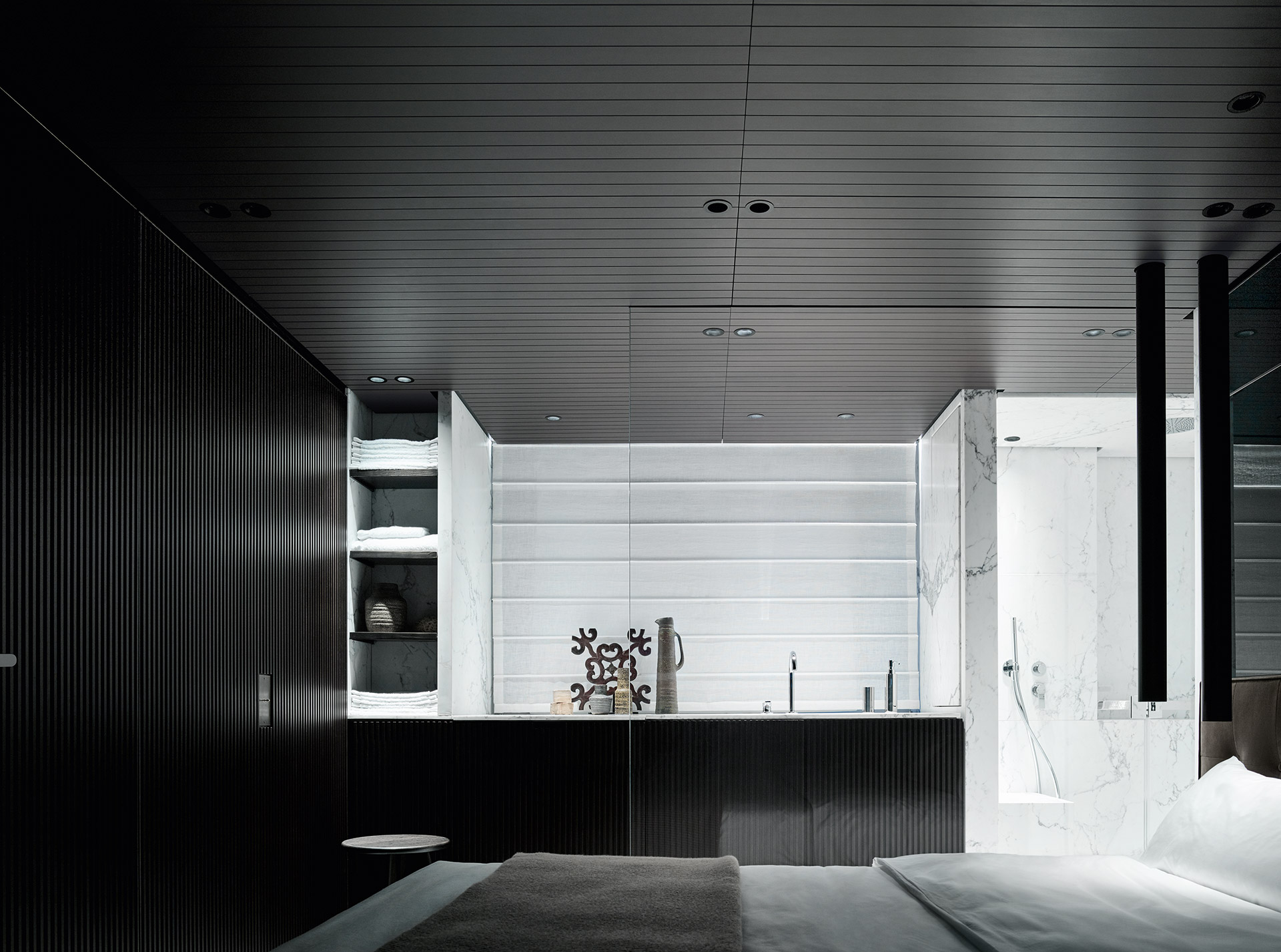 Sobri e architettonici, gli interni privilegiano lo spazio rispetto all’ornamento. Linee pulite, proporzioni equilibrate e texture morbide creano un’atmosfera composta, dove luce, comfort e funzionalità offrono un’esperienza sofisticata.