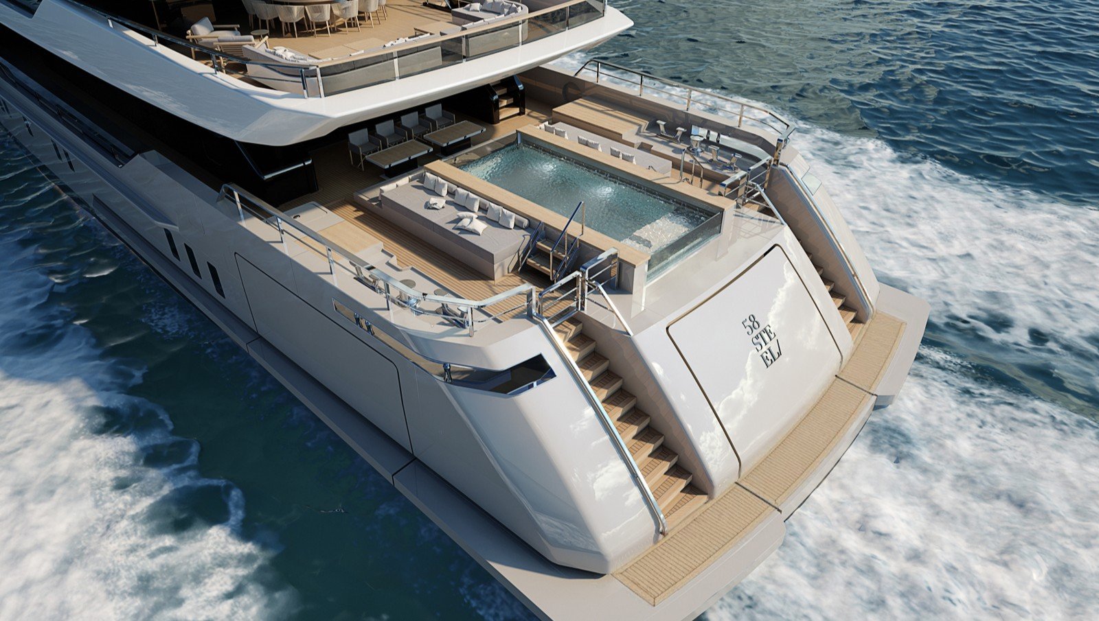Costruito su una nuova piattaforma architettonica che combina uno scafo in acciaio e una sovrastruttura in alluminio, il 58Steel offre il volume e la presenza di uno yacht di 64 metri, mantenendo al contempo un’impronta raffinata e compatta.